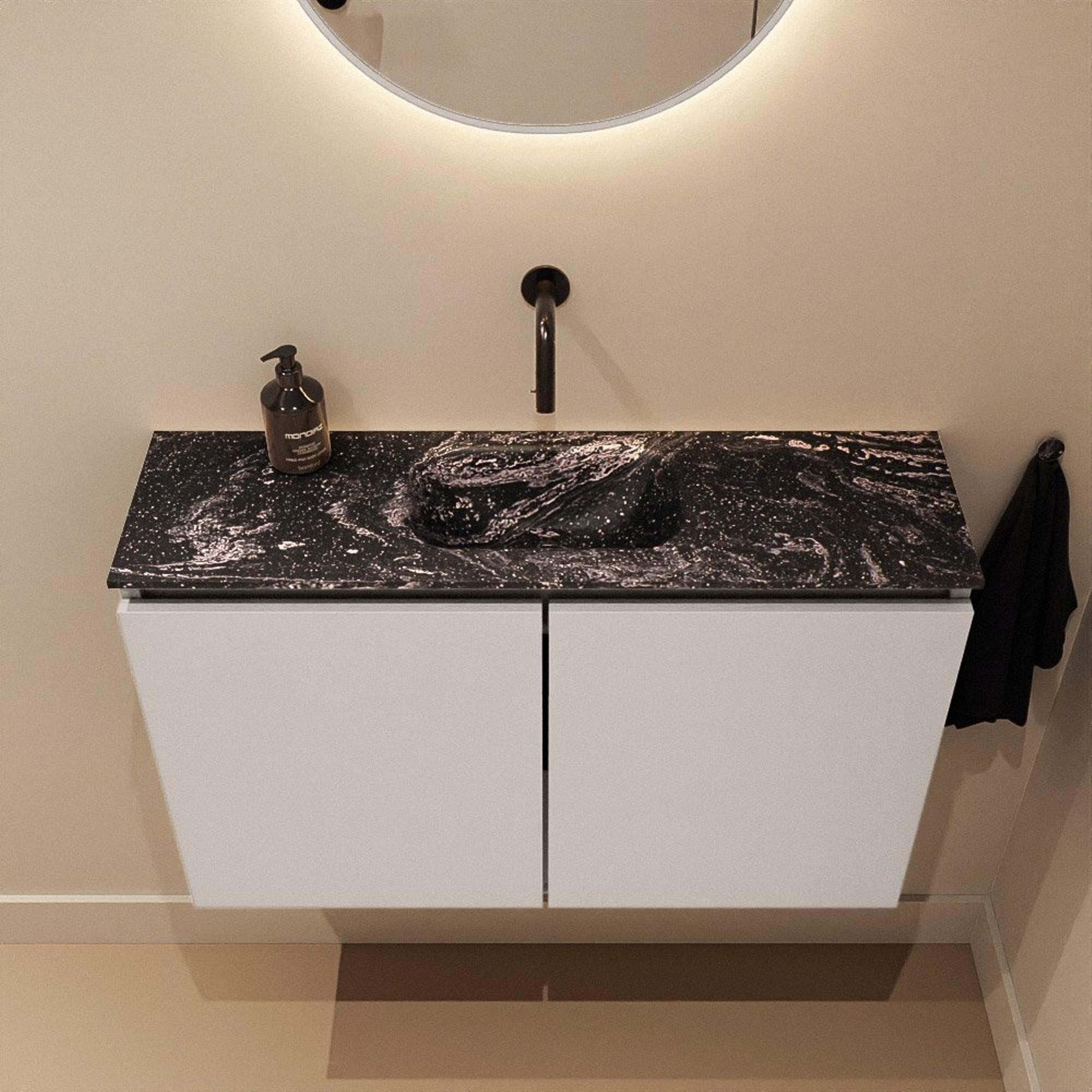 Combinaison élégante d’un meuble Linen et d’un lavabo Eden noir