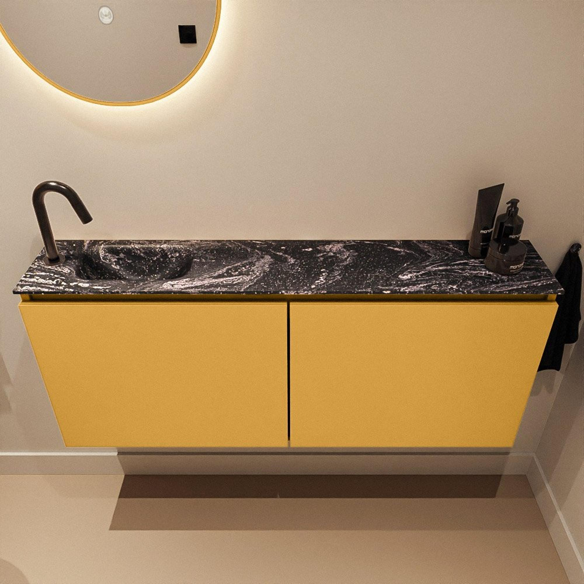 MONDIAZ TURE-DLUX meuble WC 120 cm Ocher. Lavabo EDEN Lava position gauche. Avec 1 trou de robinet.