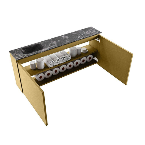 MONDIAZ TURE-DLUX Meuble de toilette 120 cm Oro. EDEN lavabo Lava position gauche. Sans trou de robinet.