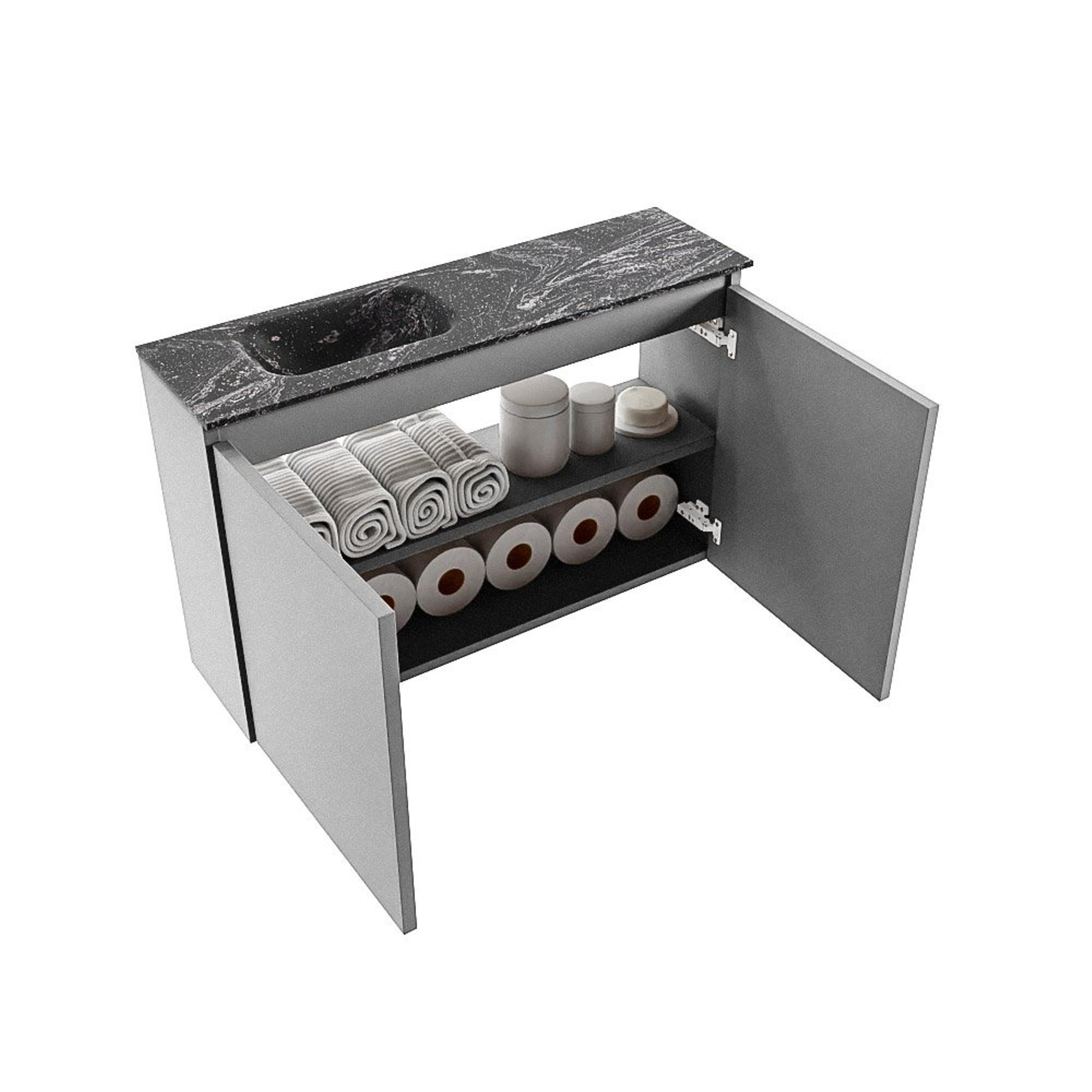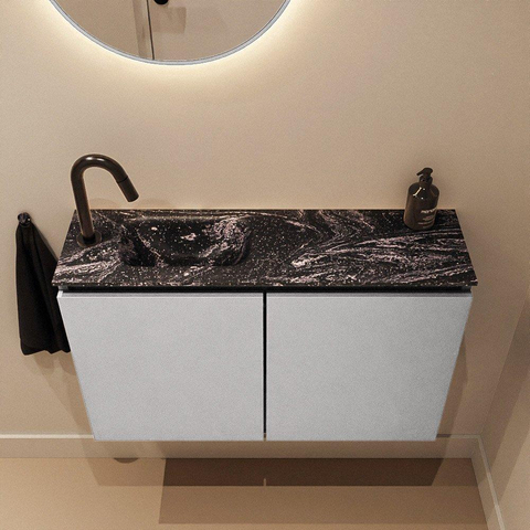 MONDIAZ TURE-DLUX meuble WC 80cm Plata. Lavabo EDEN Lava position gauche. Avec 1 trou de robinet.