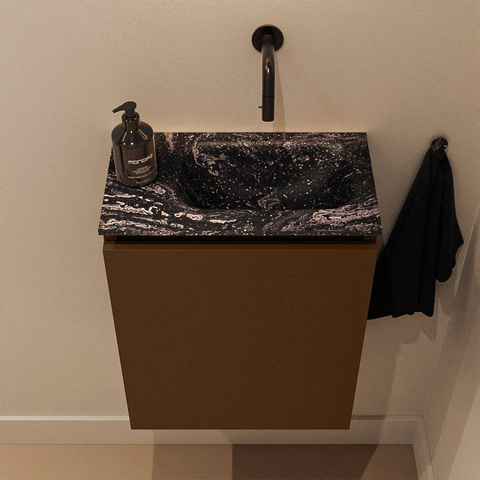 MONDIAZ TURE-DLUX Meuble de toilettes 40 cm Rust. EDEN lavabo Lava position à droite. Sans trou de robinet.