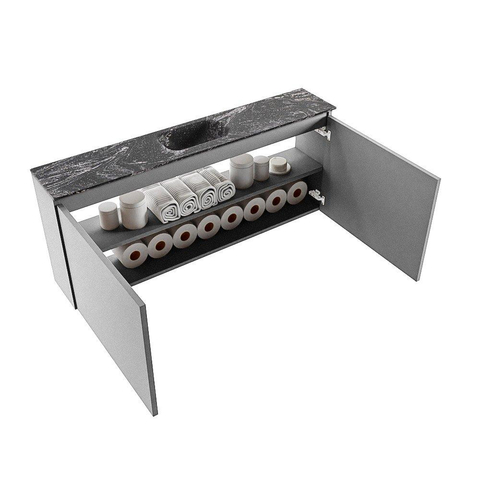 MONDIAZ TURE-DLUX meuble WC 120 cm Plata. Lavabo EDEN Lava position milieu. Avec 1 trou de robinet.