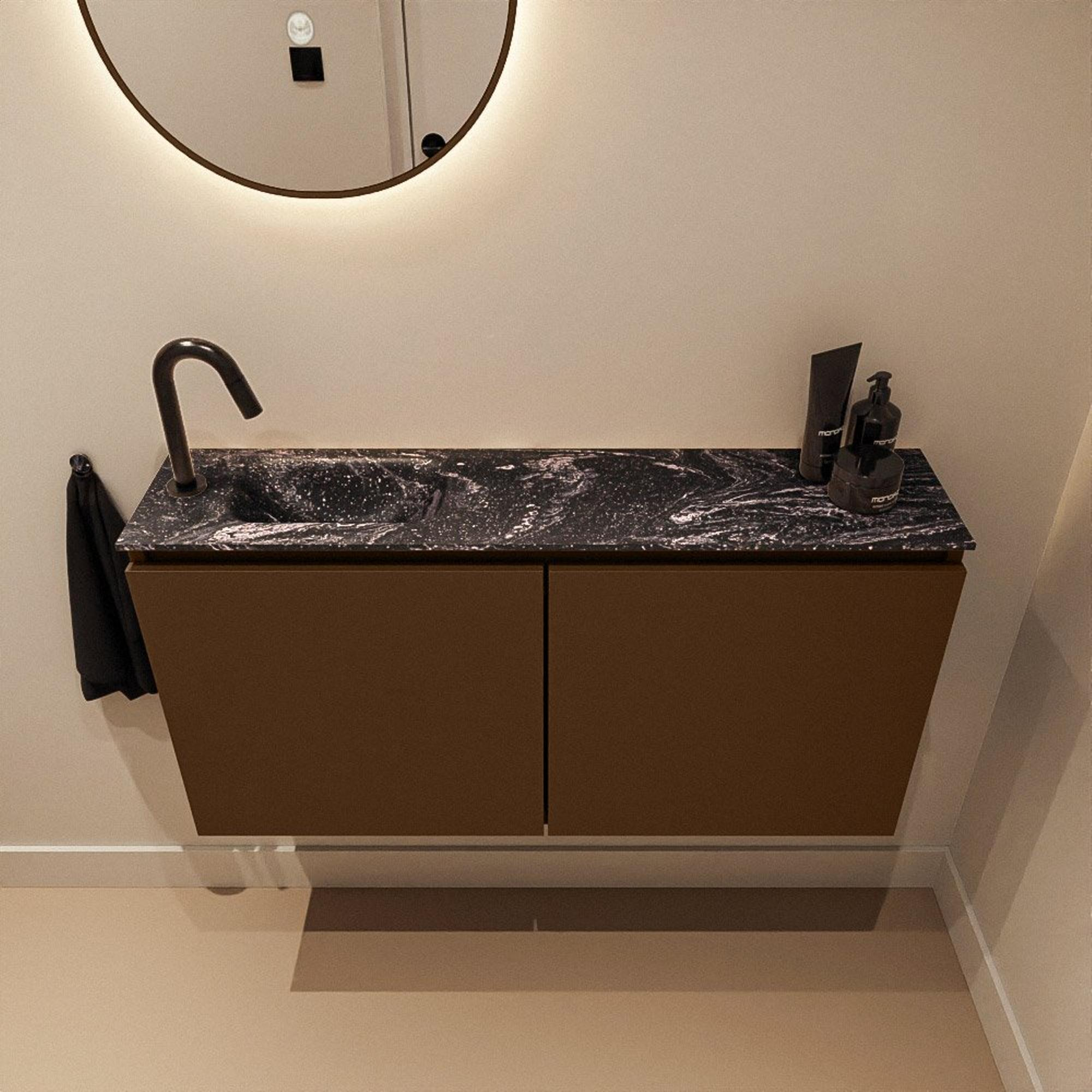 MONDIAZ TURE-DLUX Meuble WC 100cm Rust. EDEN lavabo Lava position gauche. Avec 1 trou de robinet.