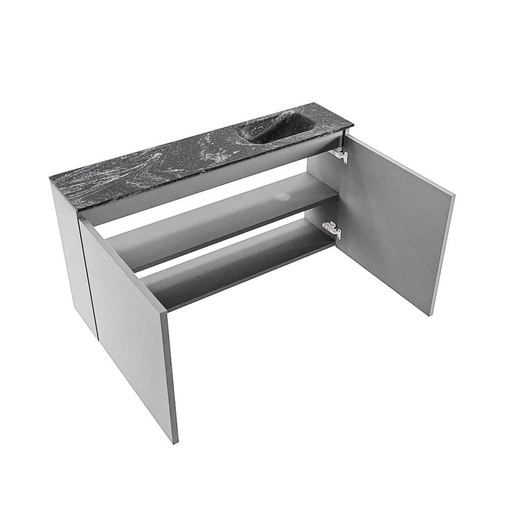 Avec ce meuble de toilette compact, vous créez en une seule fois une solution élégante et pratique pour vos toilettes ou votre petite salle de bains. Grâce à sa faible profondeur, il prend peu de place, tout en vous offrant un lavabo complet avec trou de robinet et un espace de rangement pratique derrière les portes. La couleur grise moderne combinée au plan noir et au lavabo intégré de couleur Lava donne immédiatement un aspect luxueux à votre intérieur. Ce meuble est donc idéal si vous avez un espace de toilettes étroit, que vous aimez un style épuré et moderne et que vous optez volontiers pour une solution bien pensée et peu encombrante sans faire de compromis sur le confort et la facilité d’utilisation.