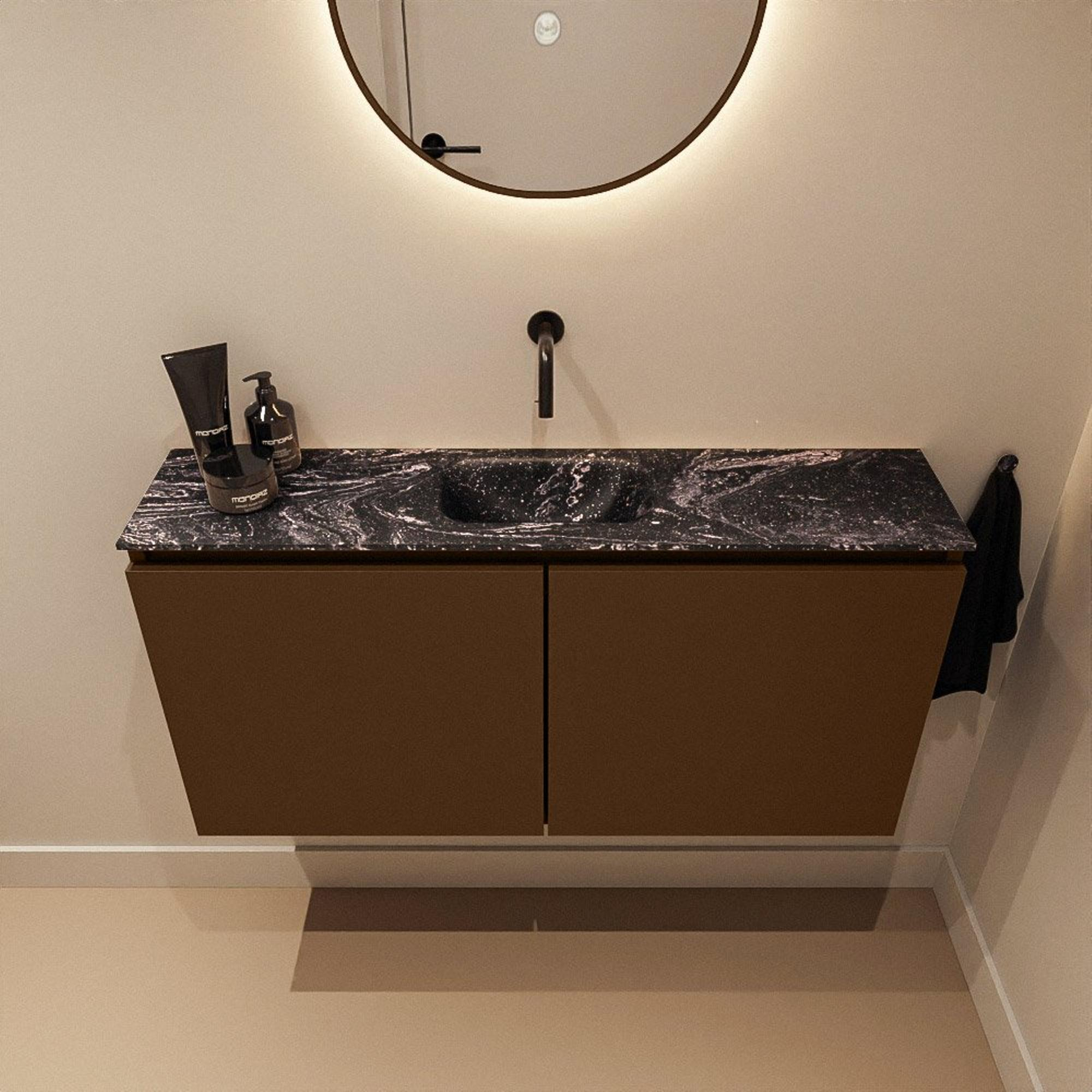 MONDIAZ TURE-DLUX Meuble WC 100cm Rust. EDEN lavabo Lava position milieu. Sans trou de robinet.
