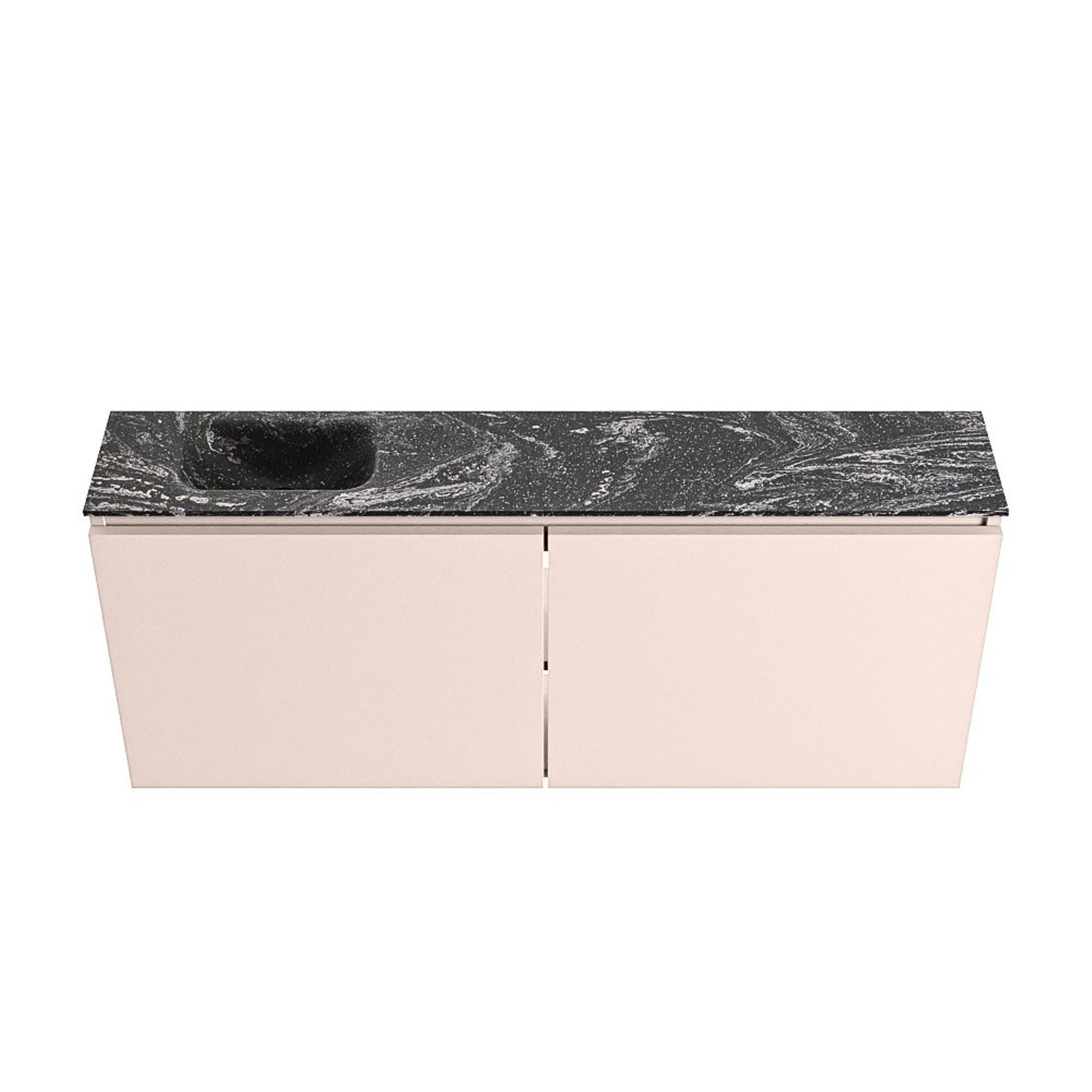MONDIAZ TURE-DLUX Meuble de toilettes 120cm Rosee. Lavabo EDEN Lava position gauche. Avec 1 trou de robinet.