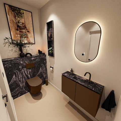 MONDIAZ TURE-DLUX Meuble WC 80cm Rust. EDEN lavabo Lava position milieu. Avec 1 trou de robinet.