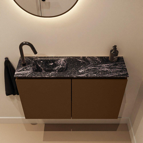 MONDIAZ TURE-DLUX Meuble de WC 80cm Rust. EDEN lavabo Lava position gauche. Avec 1 trou de robinet.