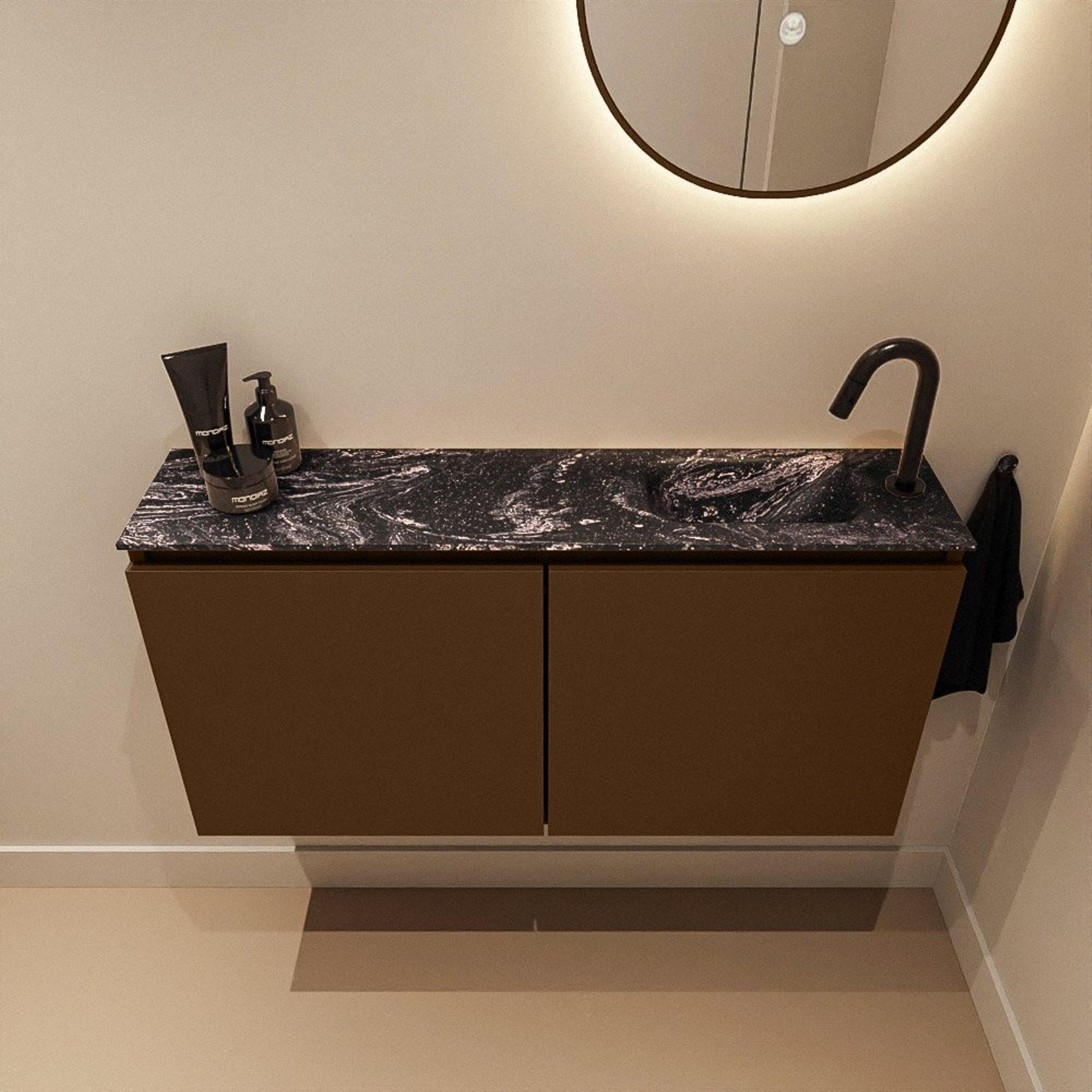 MONDIAZ TURE-DLUX Meuble WC 100 cm Rust. EDEN lavabo Lava position droite. Avec 1 trou de robinet.