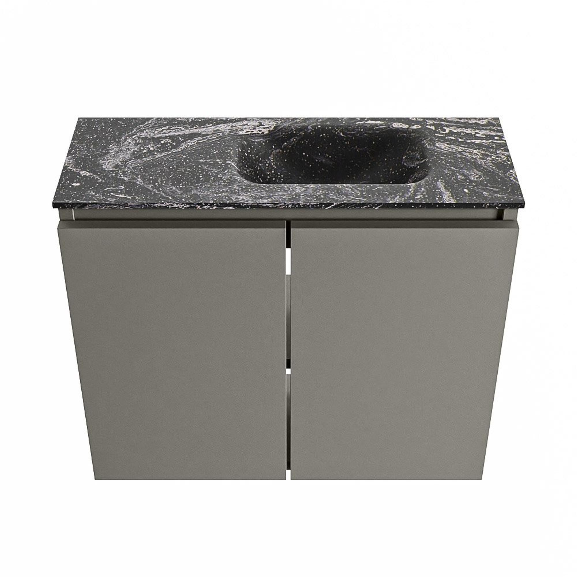 Le meuble est constitué de MDF, un matériau largement utilisé dans les salles de bains en raison de sa finition soignée et de sa stabilité dimensionnelle en usage normal. Le lavabo est fabriqué en solid surface dans la couleur Lava (noir), un matériau haut de gamme réputé pour son aspect épuré et sa facilité d’entretien. Sa surface lisse se nettoie facilement et ne comporte pas de joints dans lesquels la saleté peut facilement s’incruster. Cela garantit non seulement un point d’eau hygiénique pour le lavage des mains, mais aussi une apparence impeccable qui dure dans le temps, même en cas d’utilisation intensive. Le lavabo est livré sans trou de robinet, ce qui vous laisse la liberté d’opter pour un robinet de fontaine mural ou une autre configuration. Grâce à ses propriétés antibactériennes et à sa surface robuste, la vasque conserve longtemps un aspect soigné et impeccable.