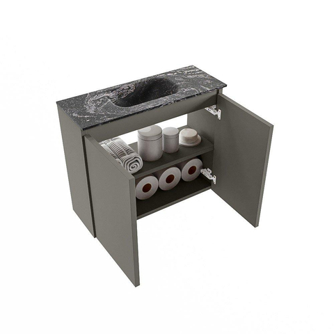 MONDIAZ TURE-DLUX Meuble WC 60 cm Smoke. Lavabo EDEN Lava position au centre. Sans trou de robinet.