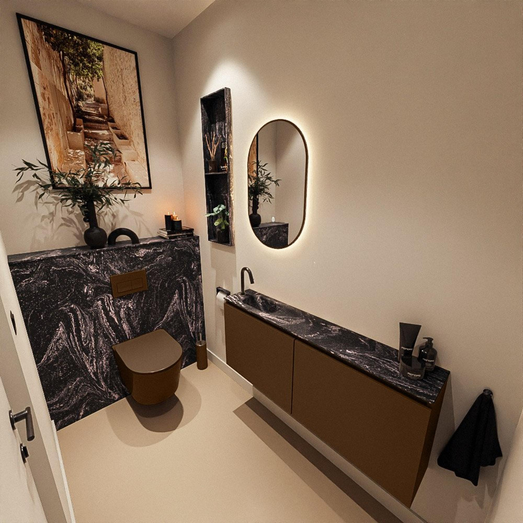 MONDIAZ TURE-DLUX meuble WC 120 cm Rust. EDEN lavabo Lava position gauche. Avec 1 trou de robinet.