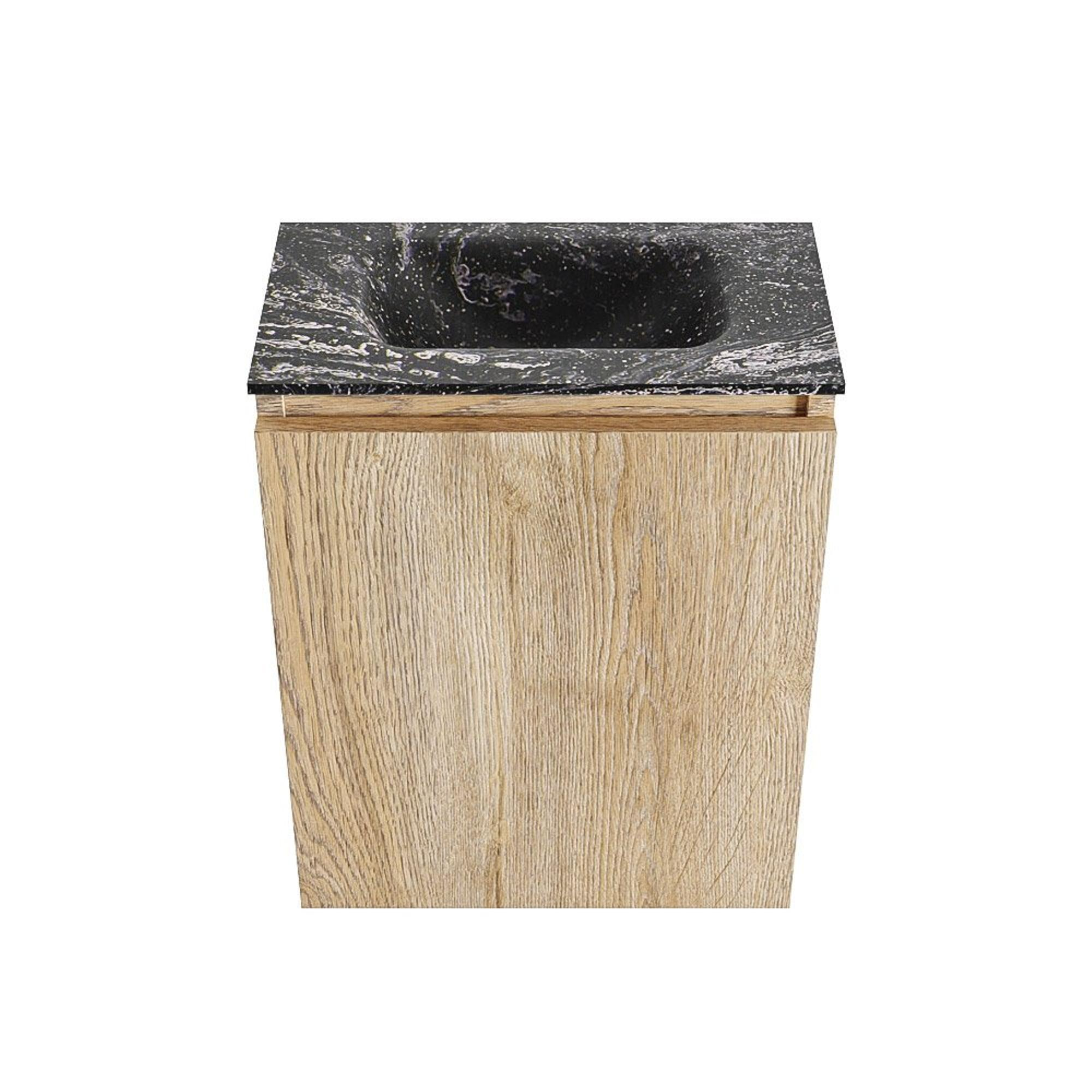 MONDIAZ TURE-DLUX Meuble de toilettes 40 cm Washed Oak. Lavabo EDEN Lava position milieu. Sans trou de robinet.