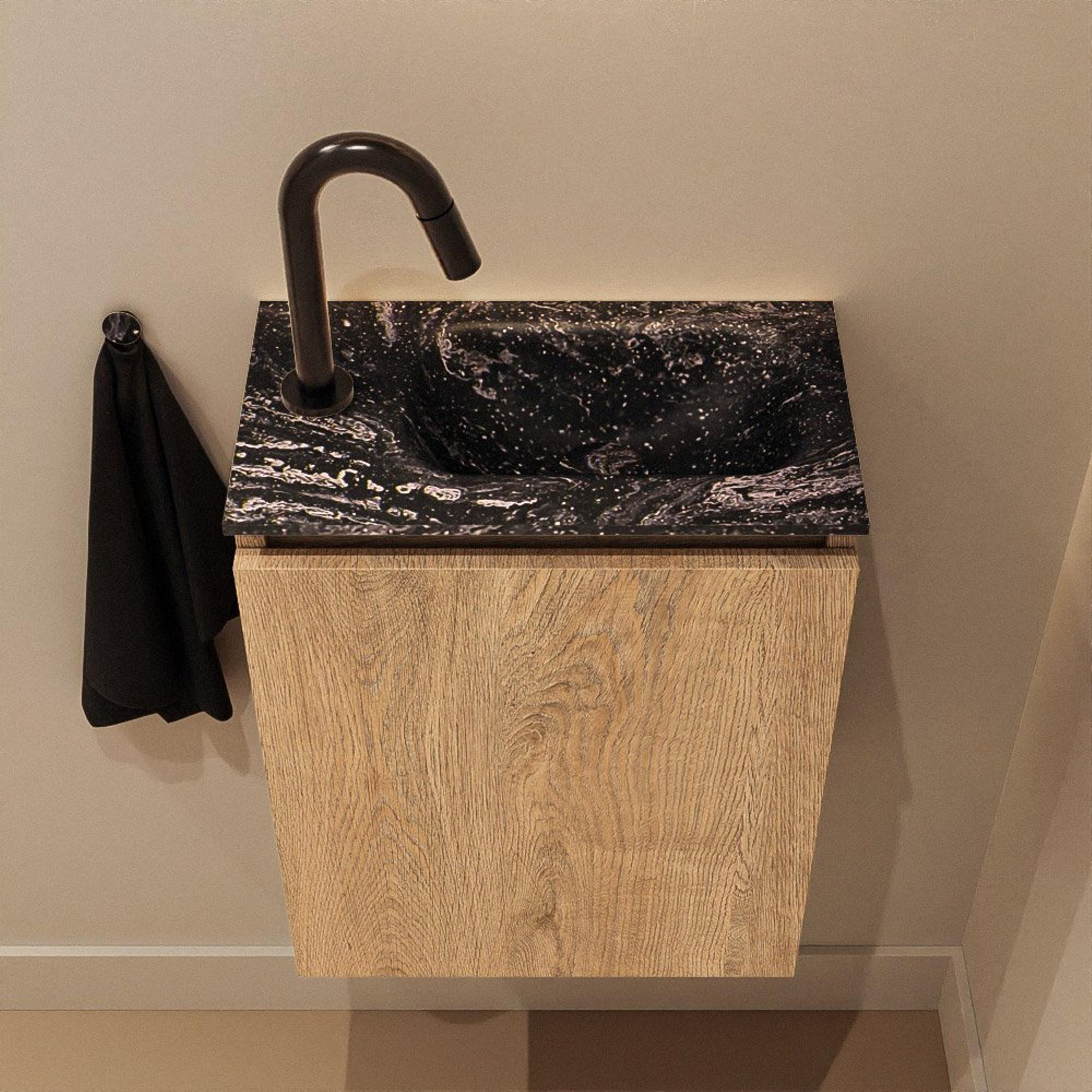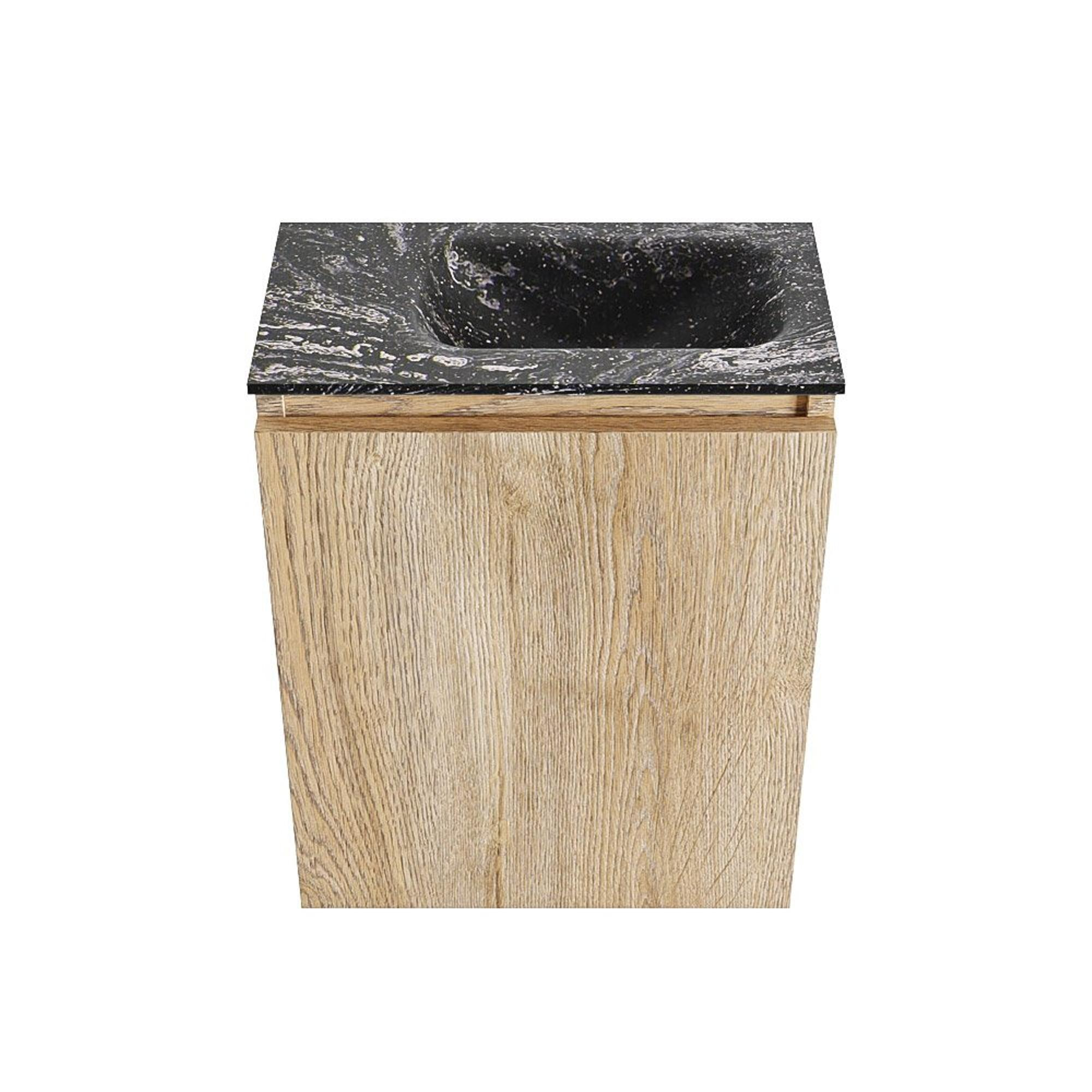 MONDIAZ TURE-DLUX Meuble WC 40 cm Washed Oak. Lavabo EDEN Lava position droite. Avec 1 trou de robinet.