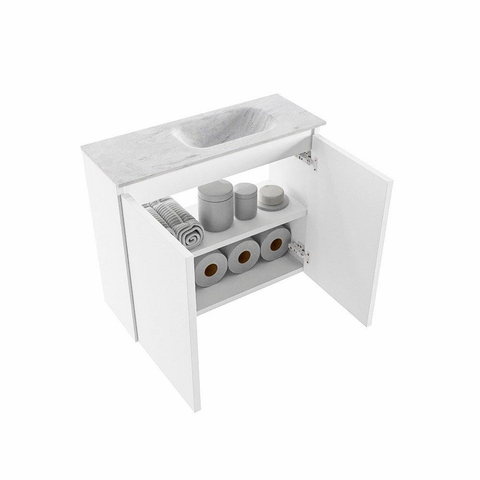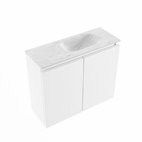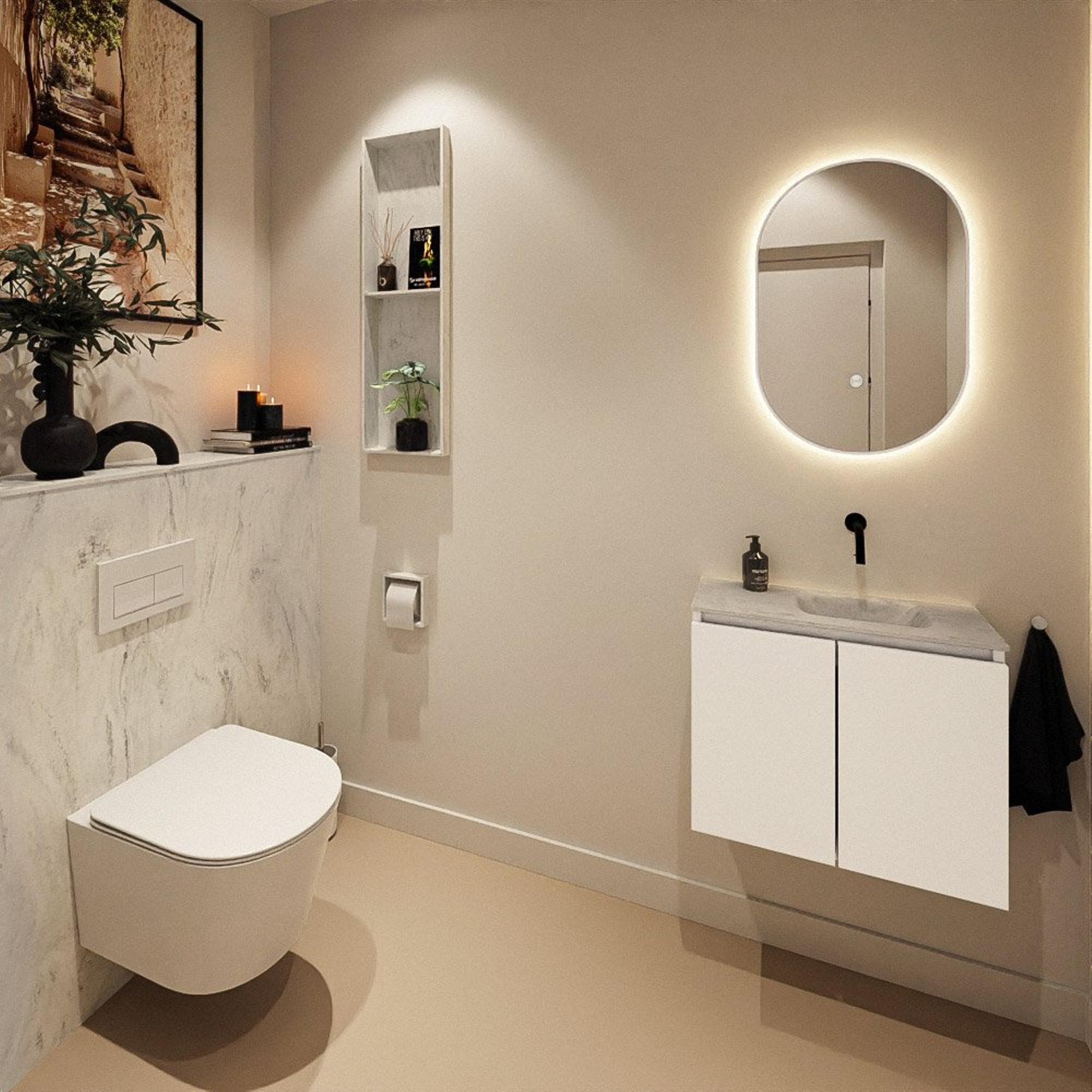 MONDIAZ TURE-DLUX Meuble de toilette 60cm Talc. EDEN vasque Opalo position droite. Sans trou de robinet.