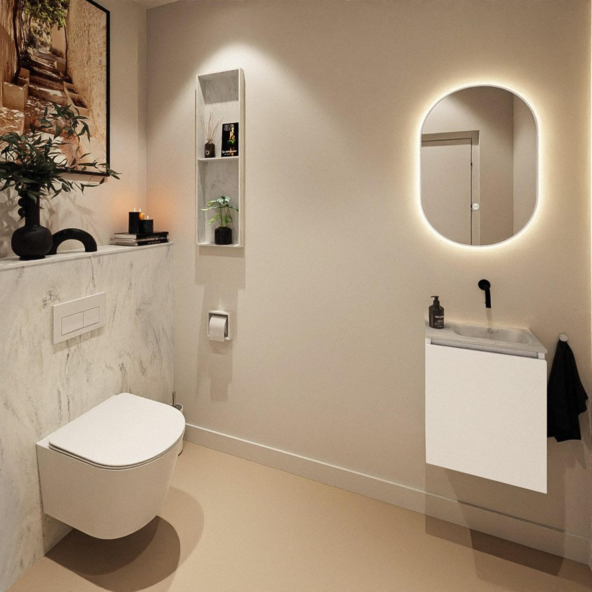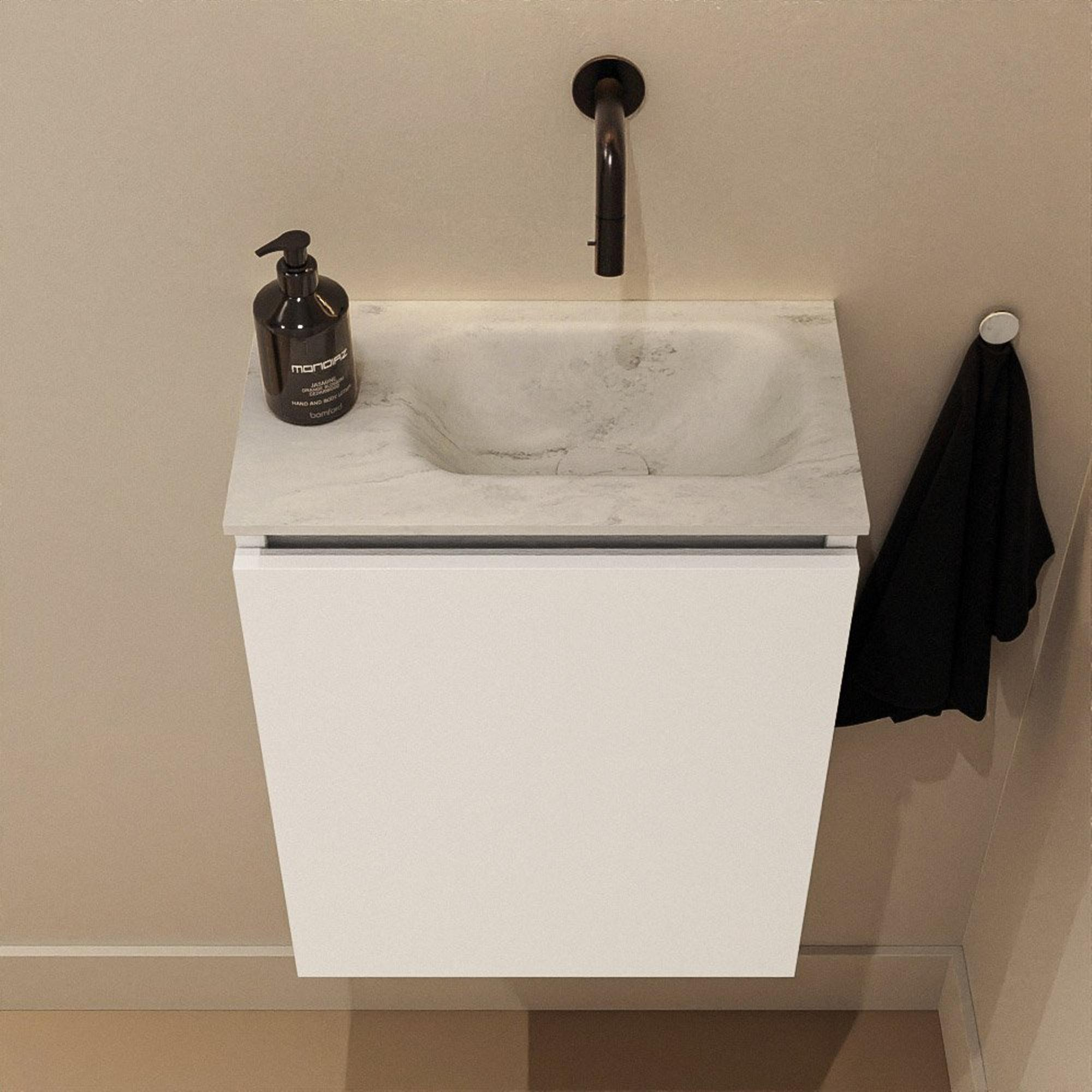MONDIAZ TURE-DLUX Meuble de WC 40 cm Talc. EDEN lavabo Opalo position droite. Sans trou de robinet.