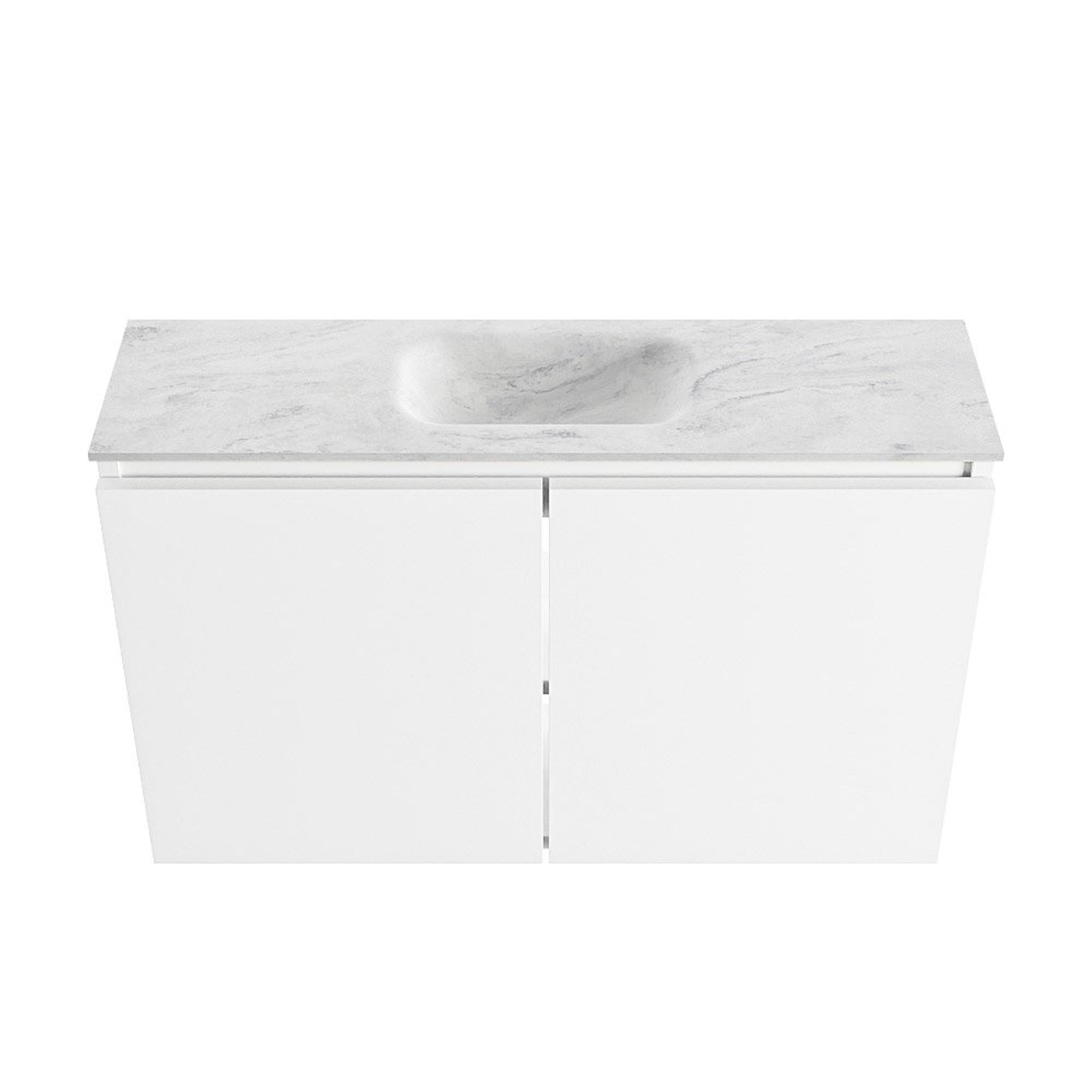 MONDIAZ TURE-DLUX Meuble de toilettes 80 cm Talc. EDEN lavabo Opalo position milieu. Sans trou de robinet.