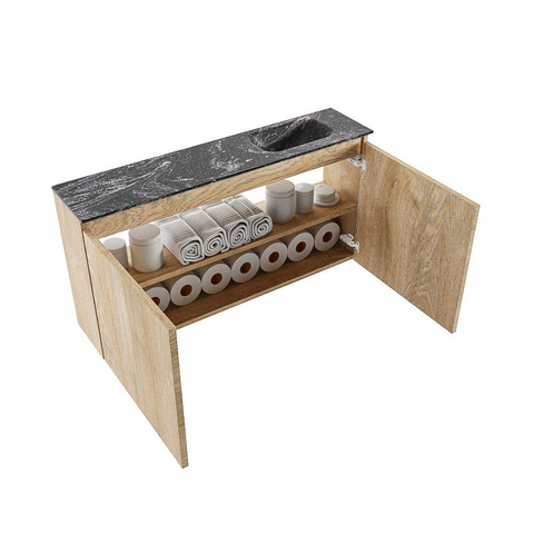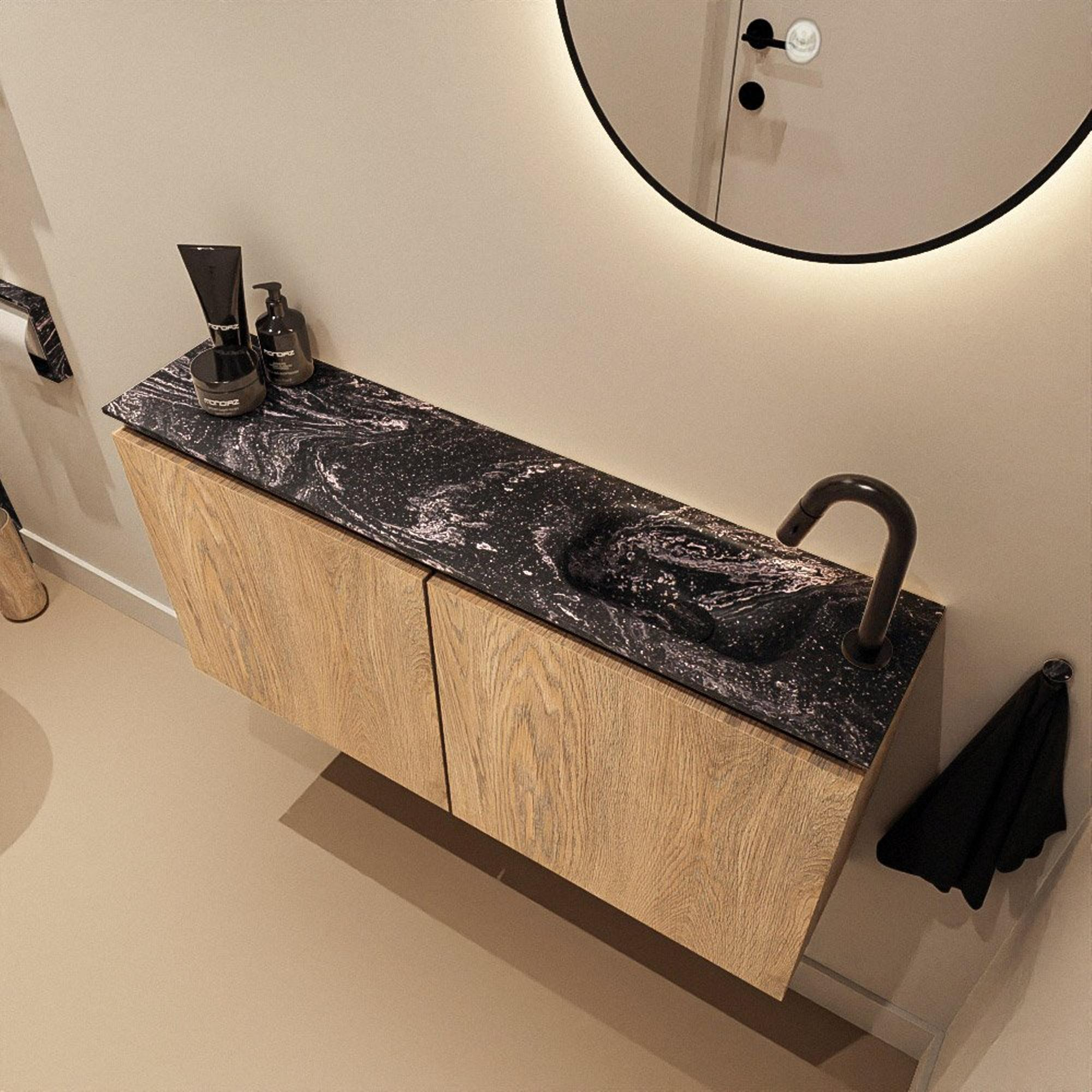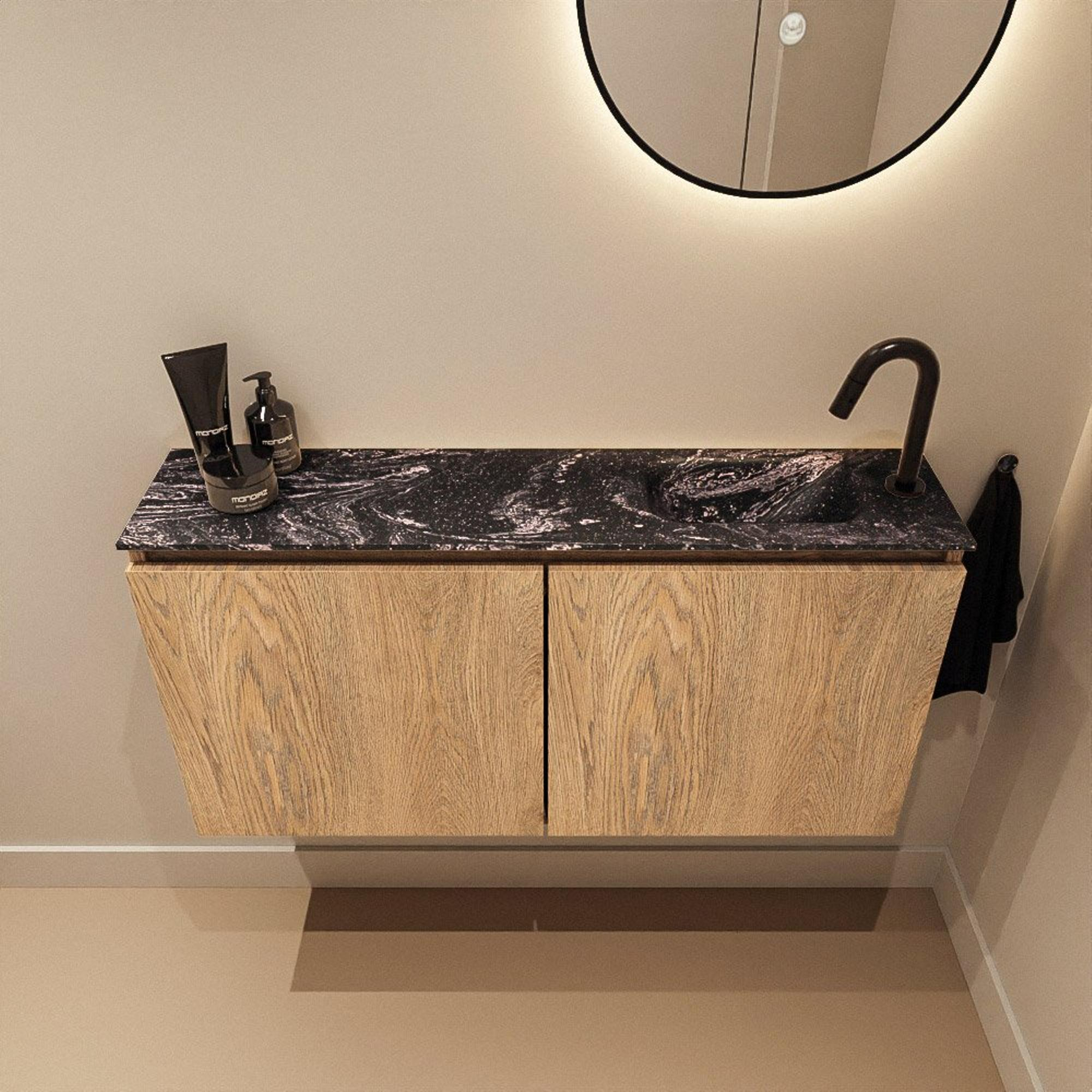 MONDIAZ TURE-DLUX meuble de toilettes 100 cm Washed Oak. Lavabo EDEN Lava position à droite. Avec 1 trou de robinet.