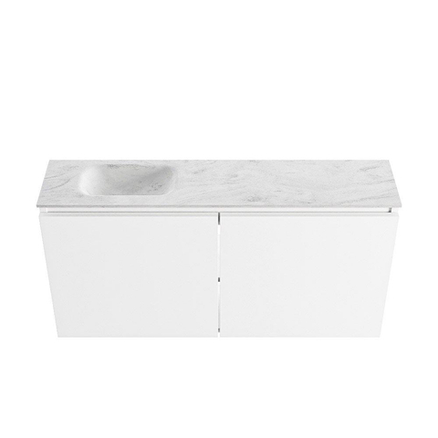 MONDIAZ TURE-DLUX Meuble WC 100 cm Talc. EDEN vasque Opalo position gauche. Sans trou de robinet.