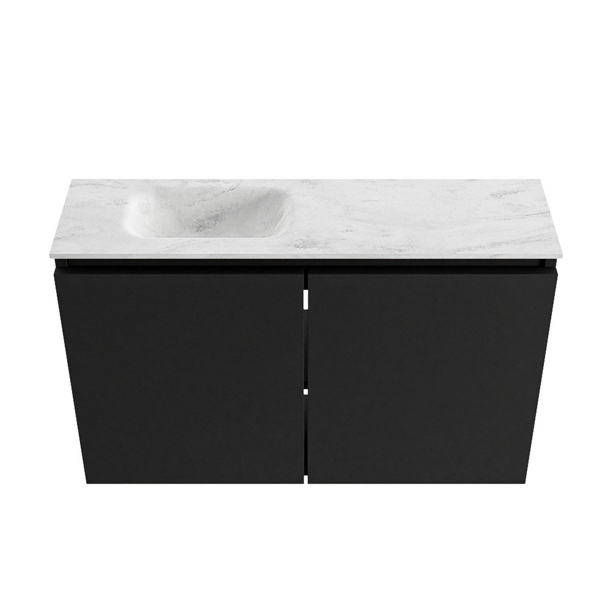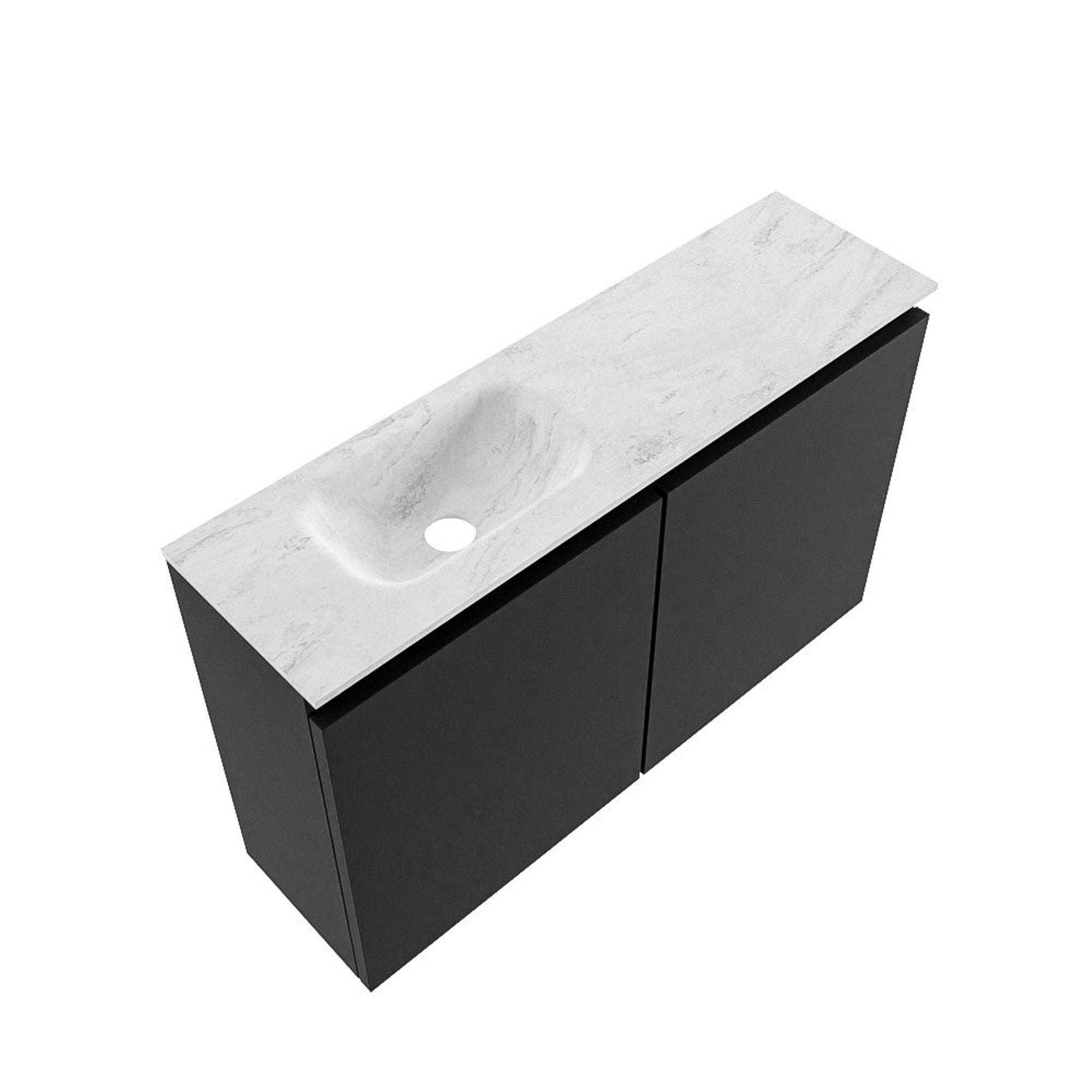 MONDIAZ TURE-DLUX Meuble de toilette 80cm Urban. Lavabo EDEN Opalo position gauche. Sans trou de robinet.