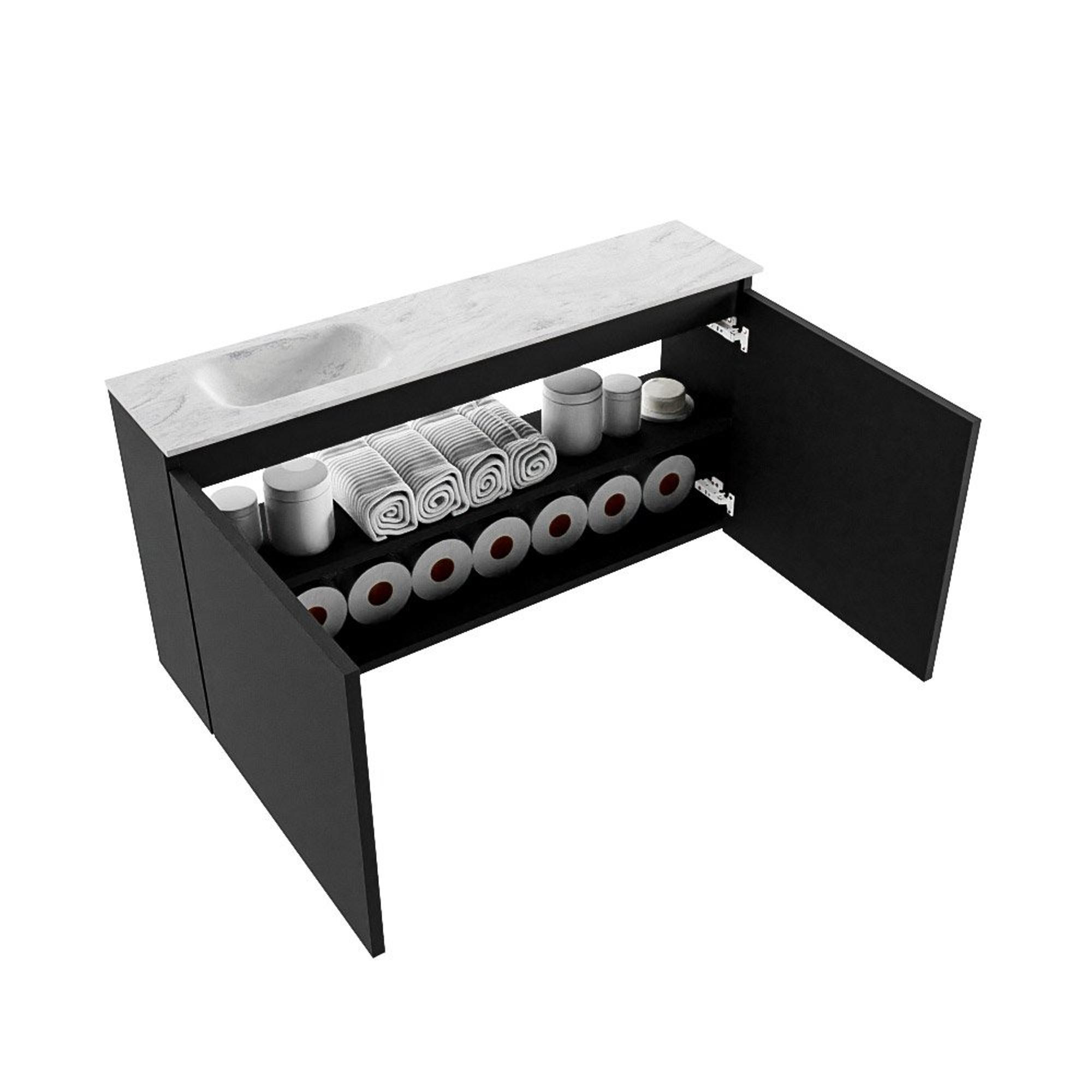 MONDIAZ TURE-DLUX Meuble WC 100cm Urban. Lavabo EDEN Opalo position gauche. Sans trou de robinet.
