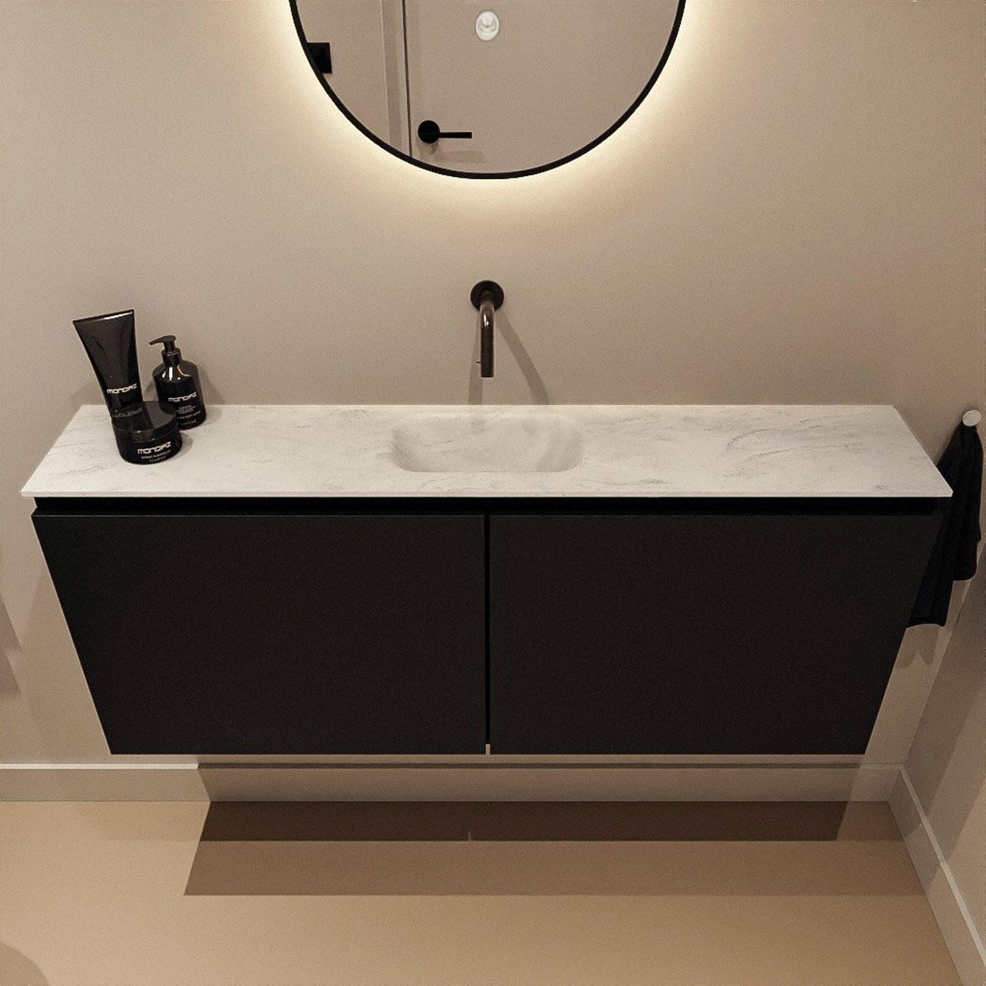 MONDIAZ TURE-DLUX meuble WC 120 cm Urban. EDEN lavabo Opalo position milieu. Sans trou de robinet.
