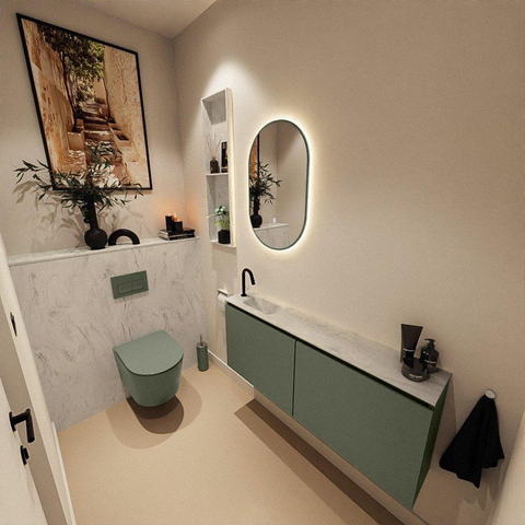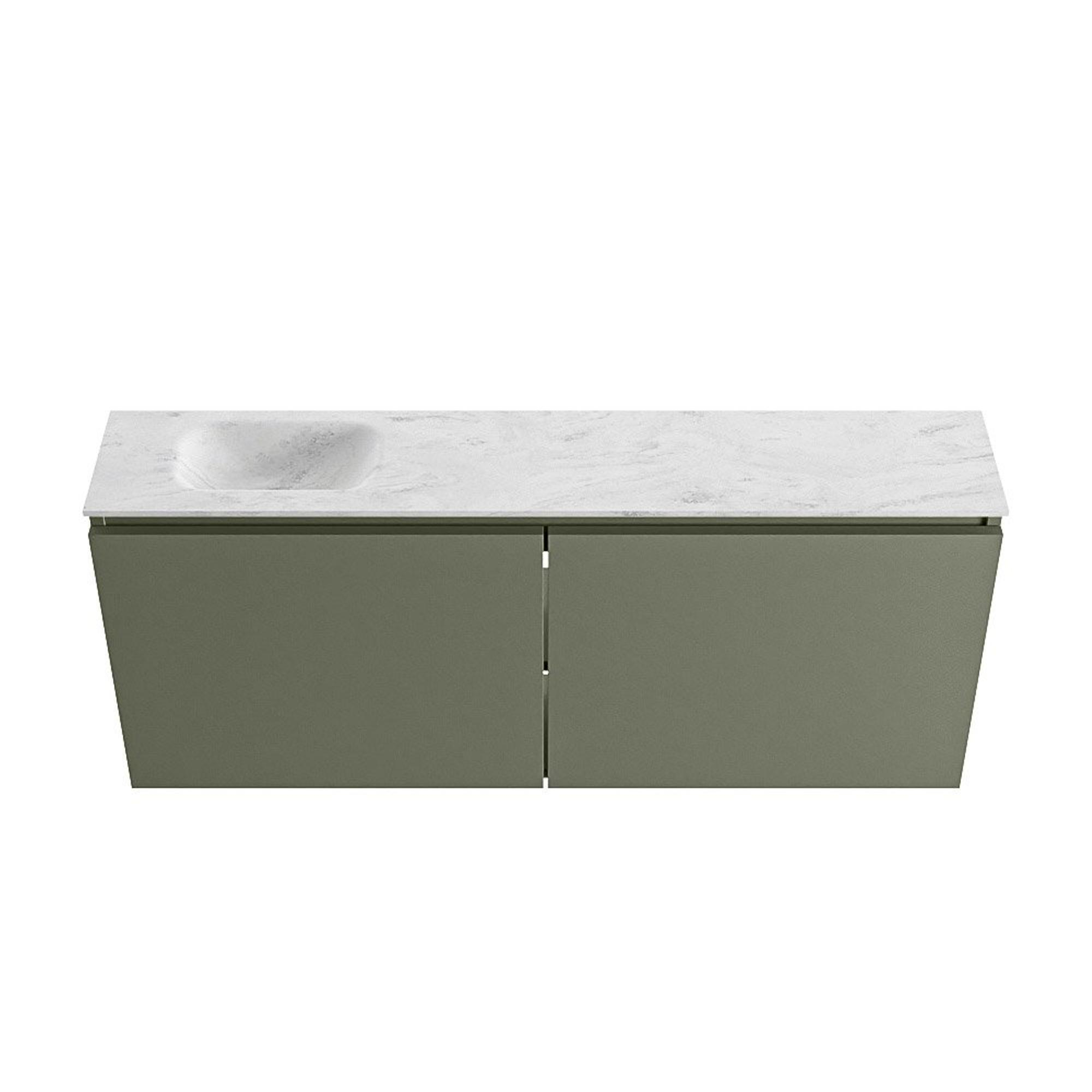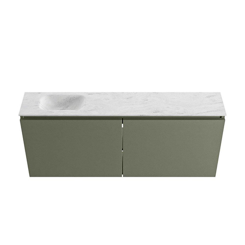 MONDIAZ TURE-DLUX meuble WC 120 cm Army. Lavabo EDEN Opalo position gauche. Avec 1 trou de robinet.