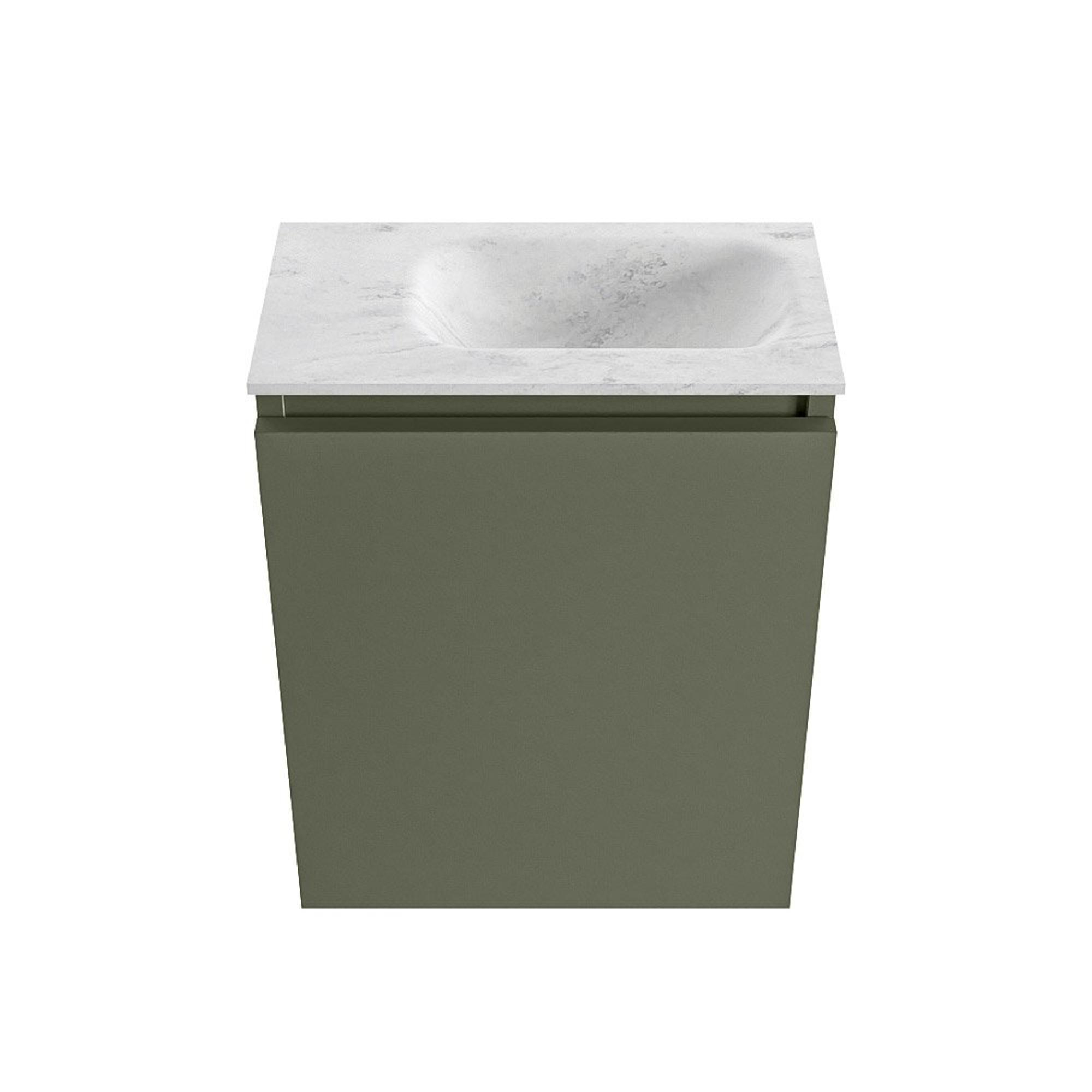 MONDIAZ TURE-DLUX Meuble de toilettes 40cm Army. Lavabo EDEN Opalo position droite. Sans trou de robinet.