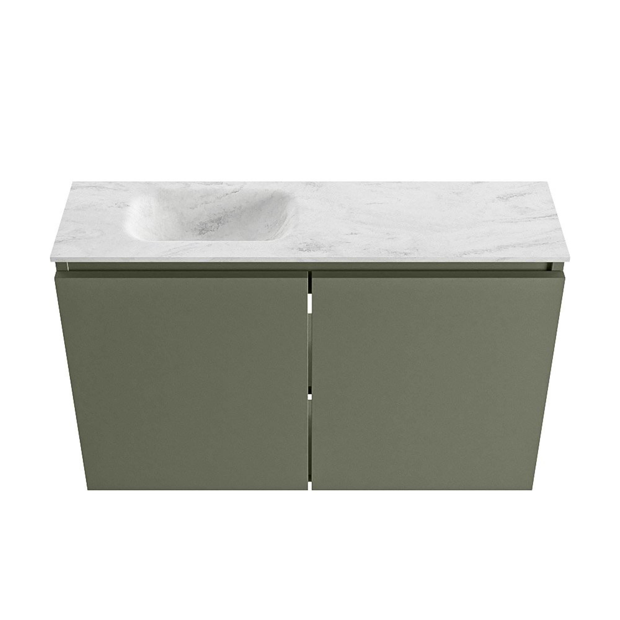 MONDIAZ TURE-DLUX Meuble de toilettes 80 cm Army. EDEN lavabo Opalo position gauche. Avec 1 trou de robinet.