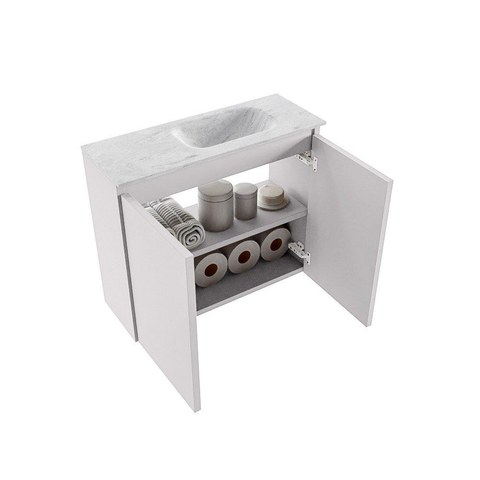 MONDIAZ TURE-DLUX Meuble de toilettes 60 cm Cale. Lavabo EDEN Opalo position droite. Avec 1 trou de robinet.