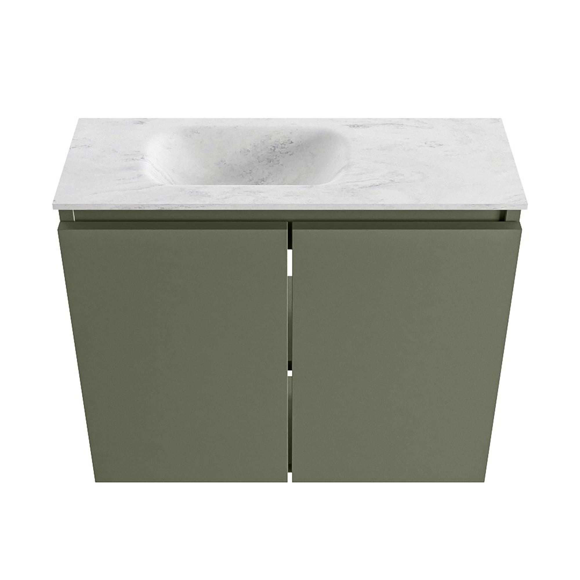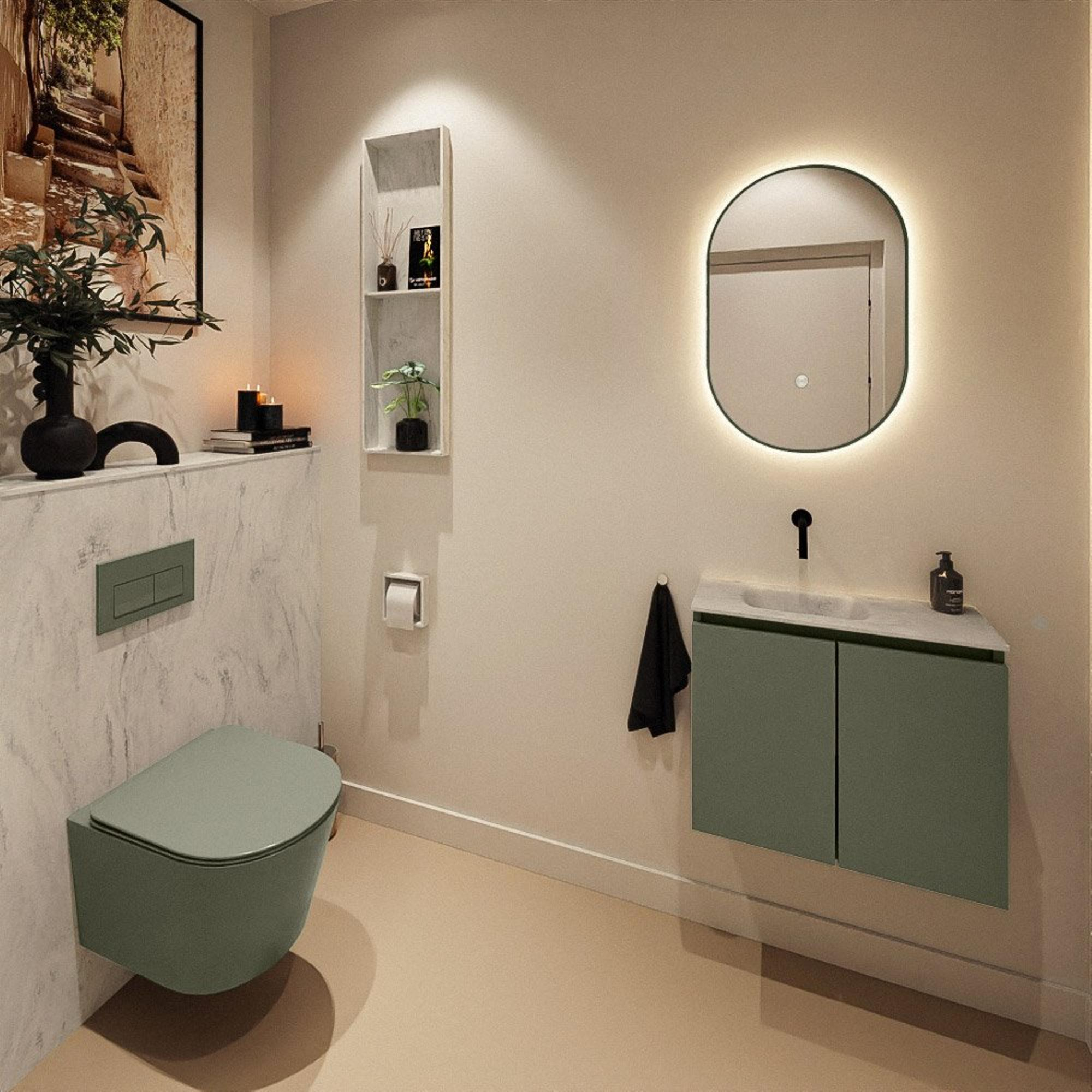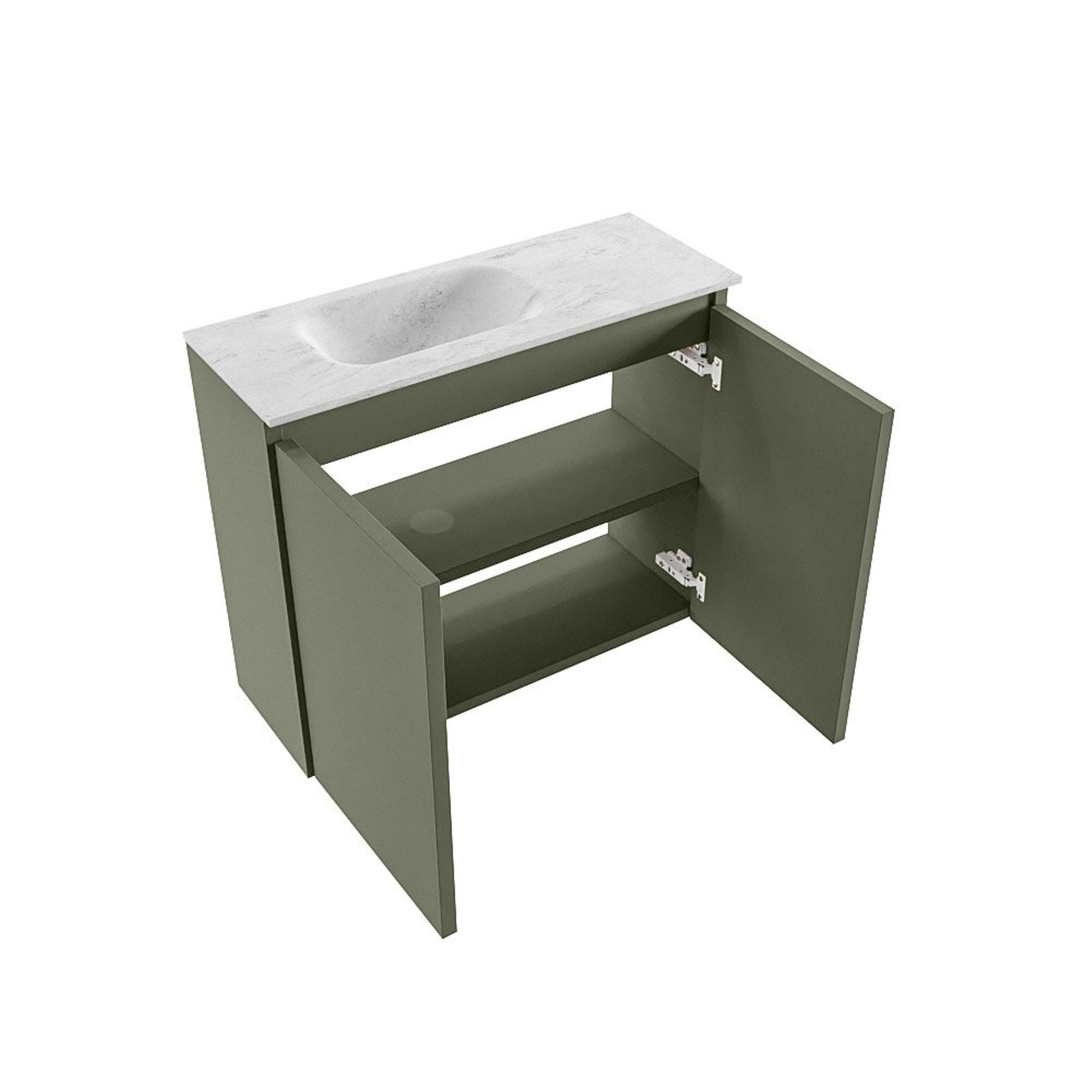 MONDIAZ TURE-DLUX Meuble de toilettes 60 cm Army. Lavabo EDEN Opalo position gauche. Sans trou de robinet.