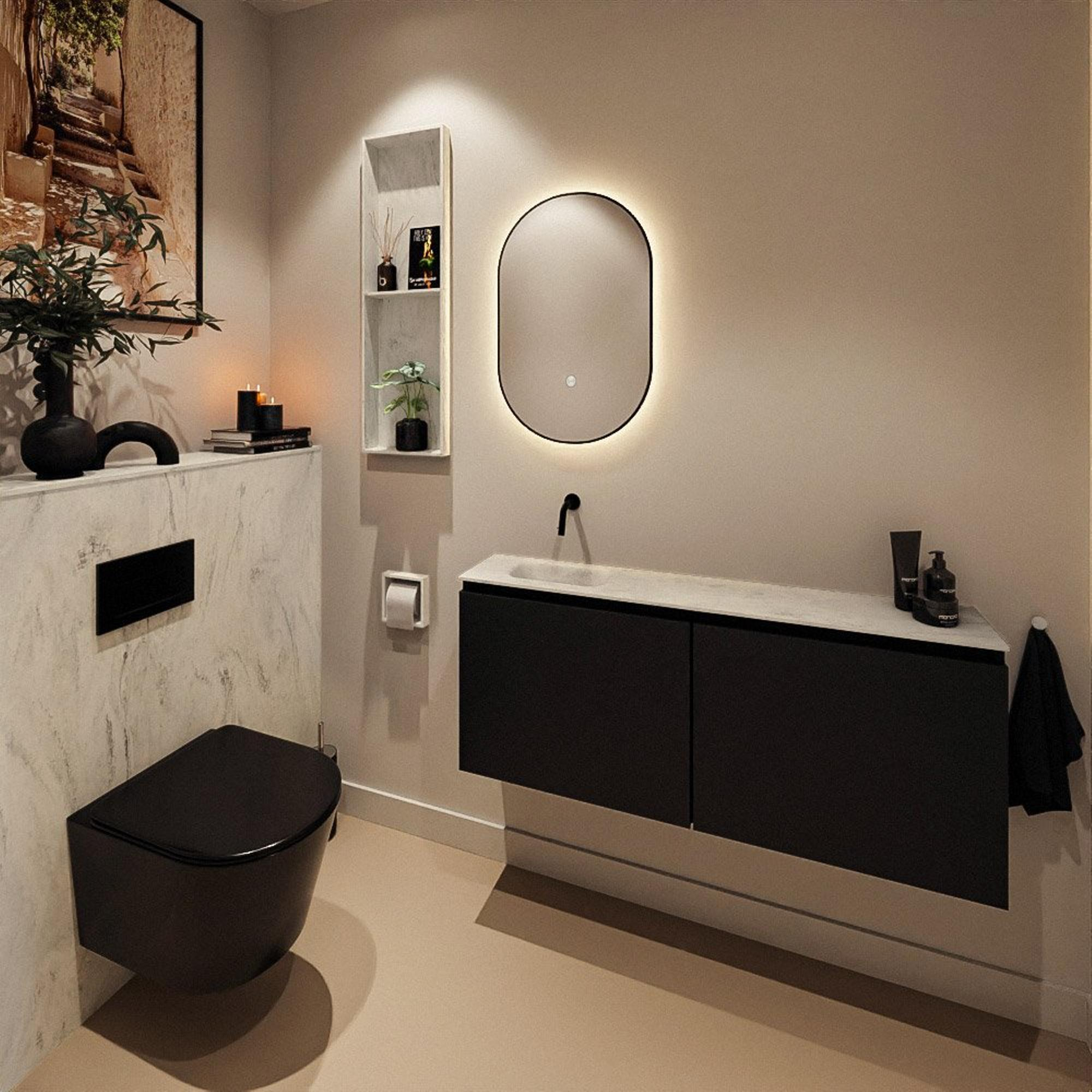 MONDIAZ TURE-DLUX meuble de WC 120 cm Urban. EDEN lavabo Opalo position gauche. Sans trou de robinet.