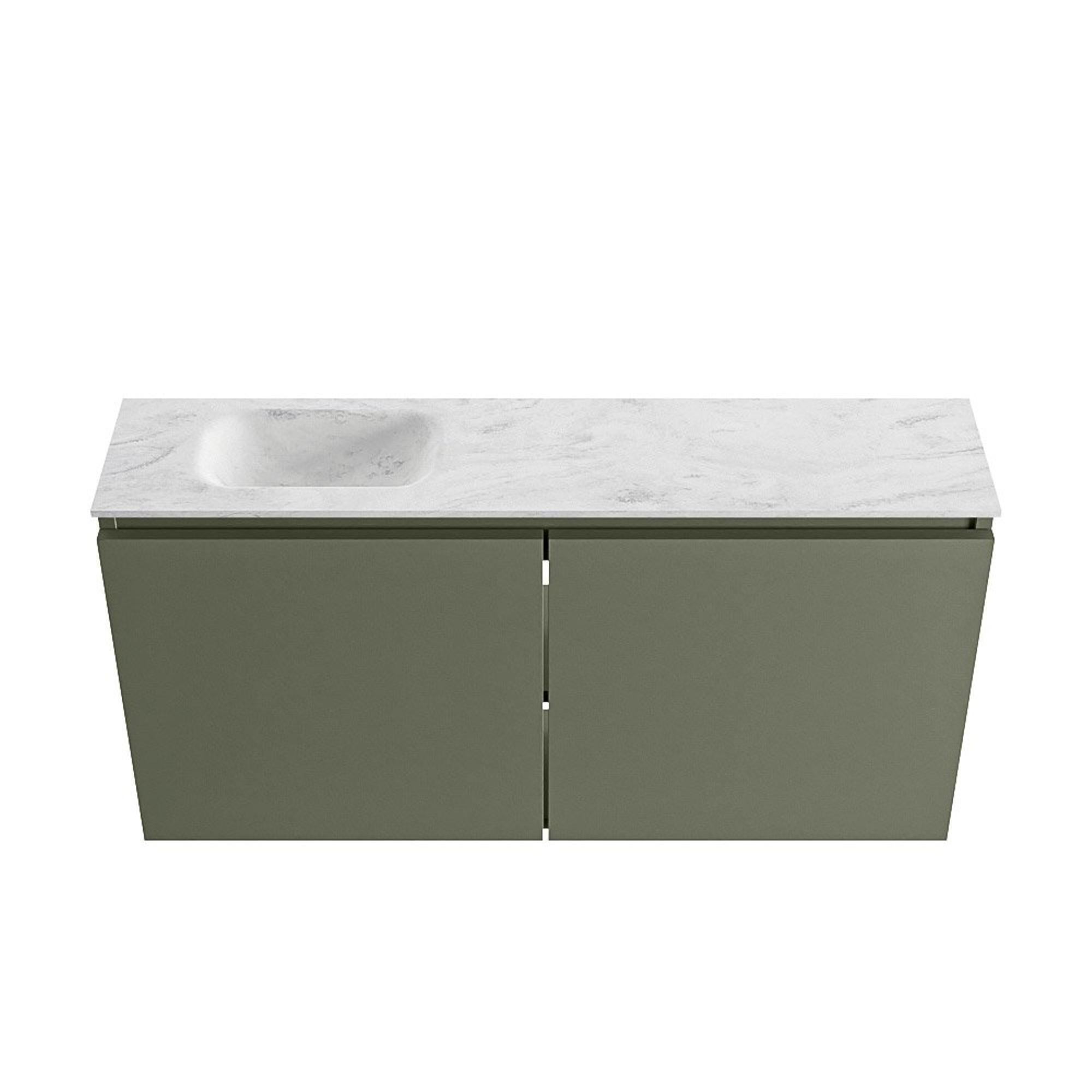 MONDIAZ TURE-DLUX Meuble WC 100cm Army. Lavabo EDEN Opalo position gauche. Avec 1 trou de robinet.