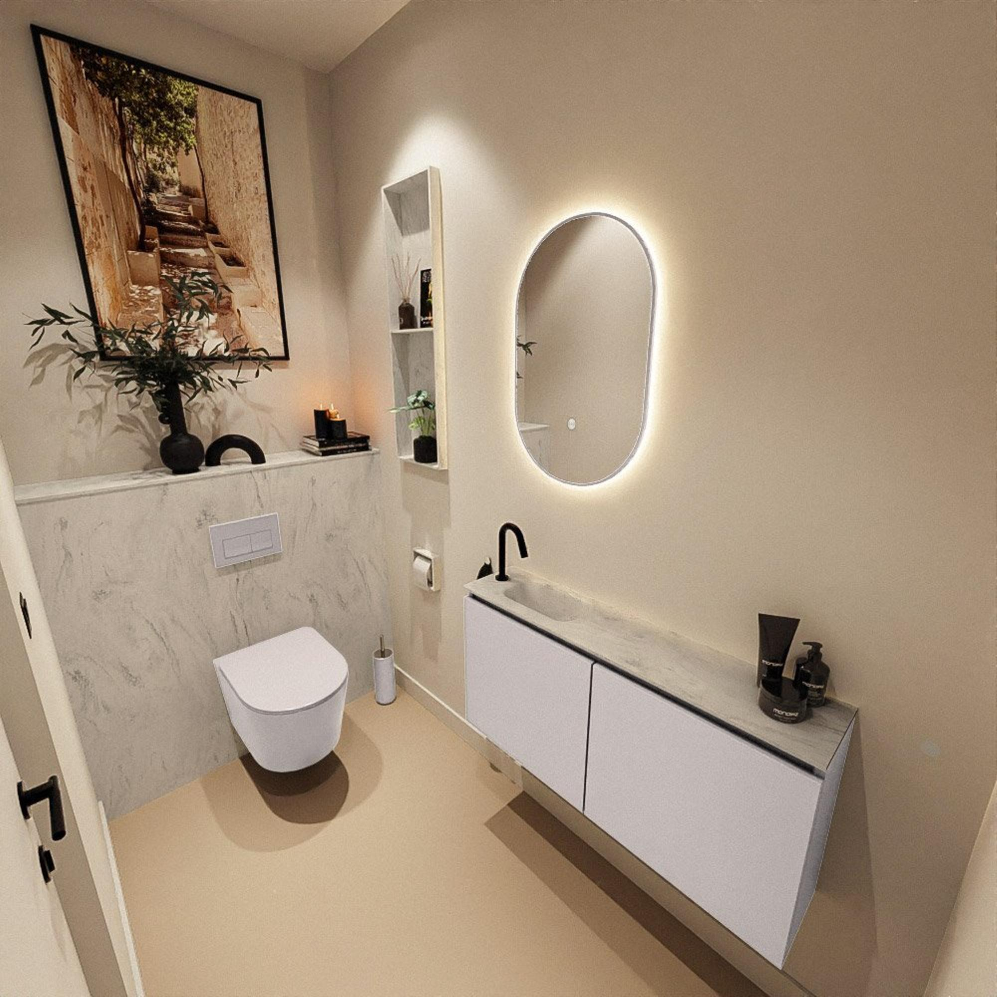 MONDIAZ TURE-DLUX meuble WC 100 cm Cale. EDEN lavabo Opalo position gauche. Avec 1 trou de robinet.