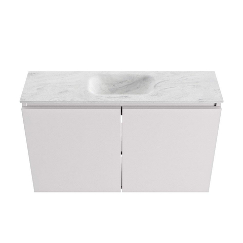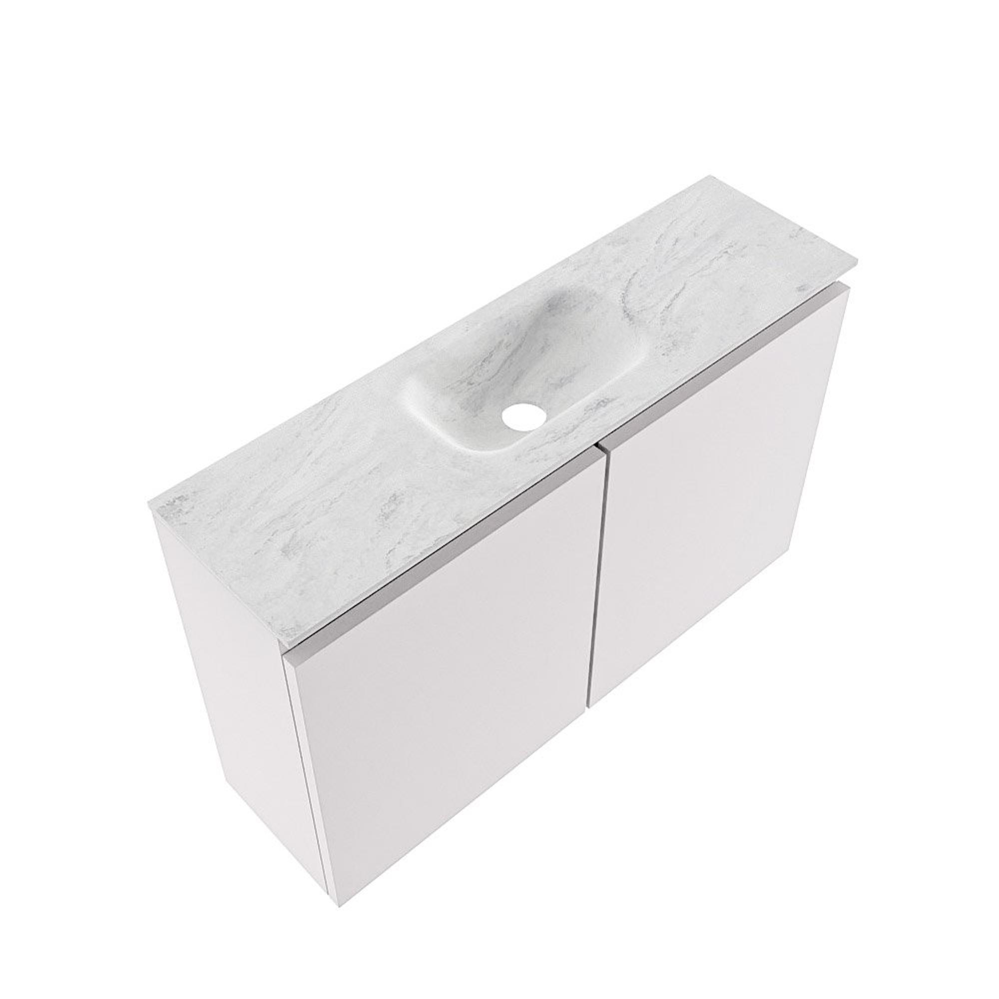 MONDIAZ TURE-DLUX Meuble WC 80 cm Cale. EDEN lavabo Opalo position centrale. Sans trou de robinet.