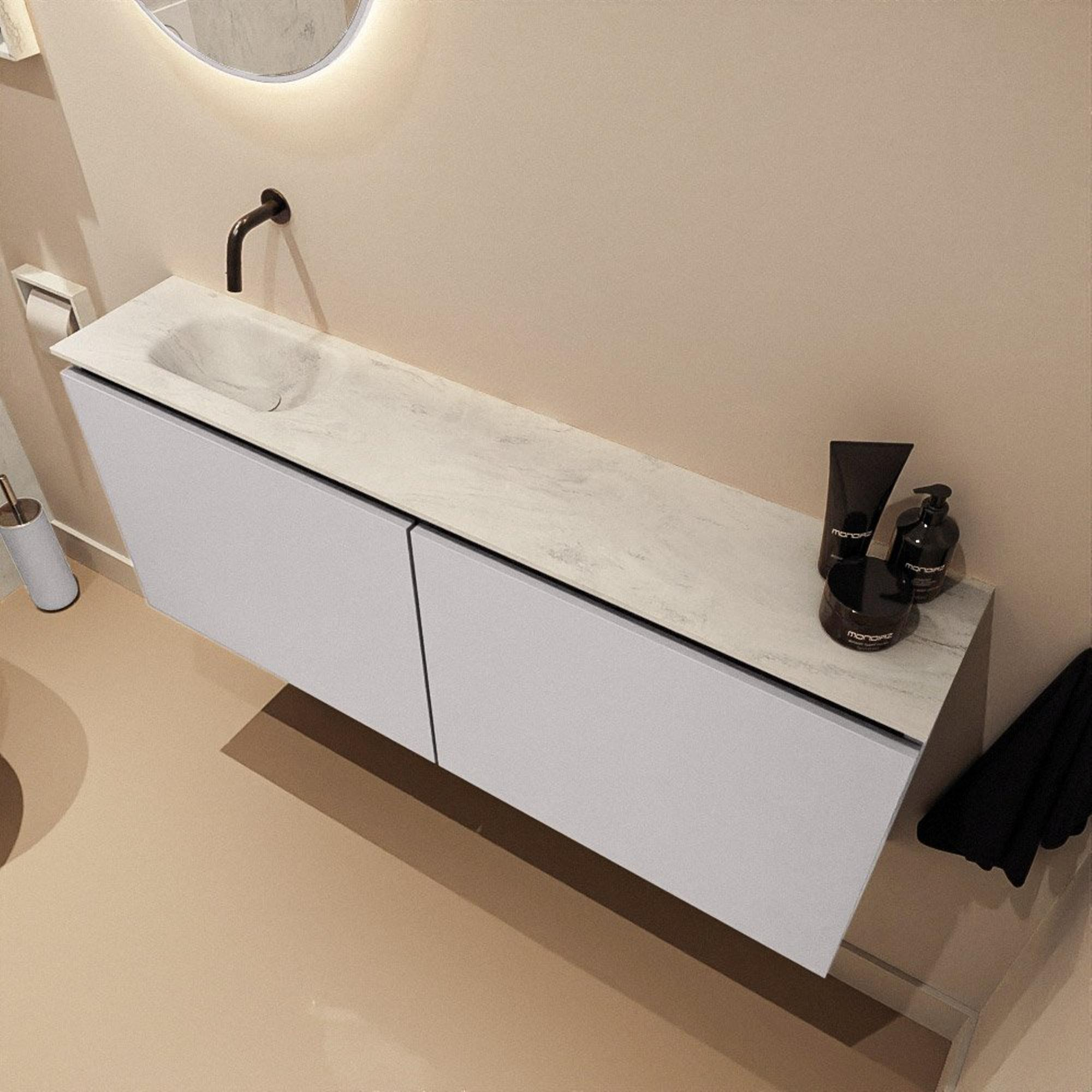 MONDIAZ TURE-DLUX Meuble de WC 120 cm Cale. EDEN lavabo Opalo position gauche. Sans trou de robinet.