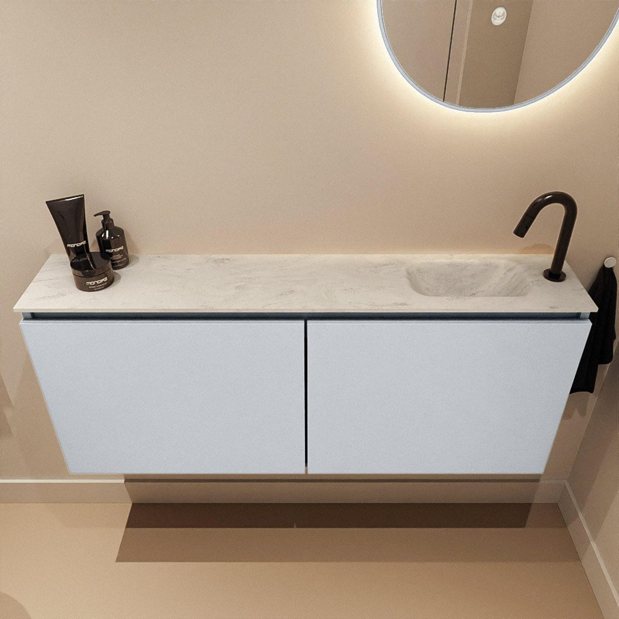 MONDIAZ TURE-DLUX Meuble WC 120 cm Clay. EDEN vasque Opalo position droite. Avec 1 trou de robinet.