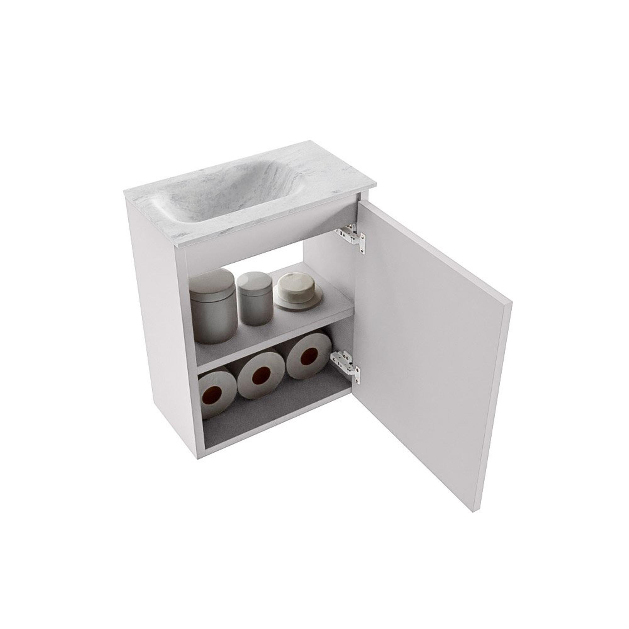 MONDIAZ TURE-DLUX meuble de toilettes 40cm Cale. EDEN lavabo Opalo position gauche. Avec 1 trou de robinet.