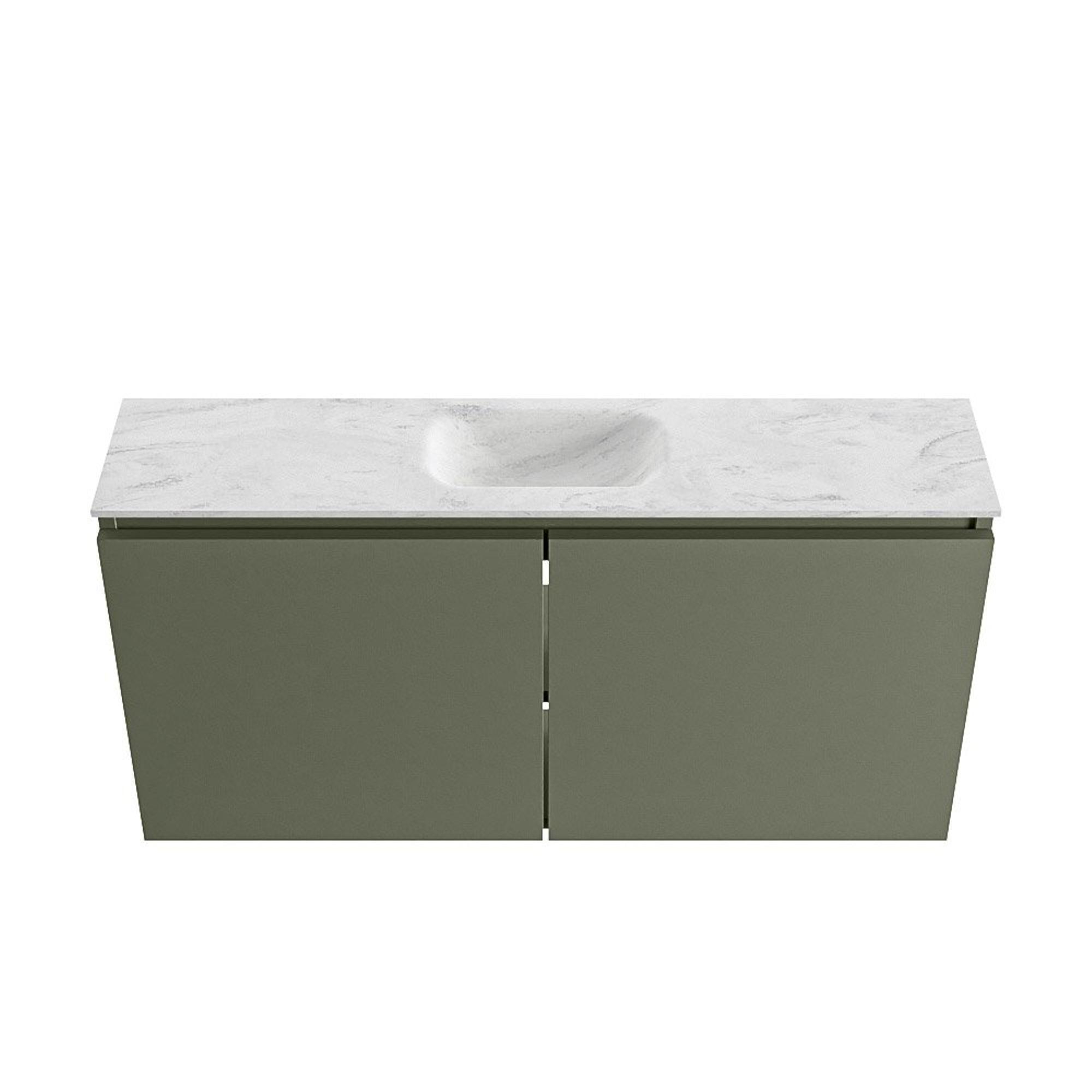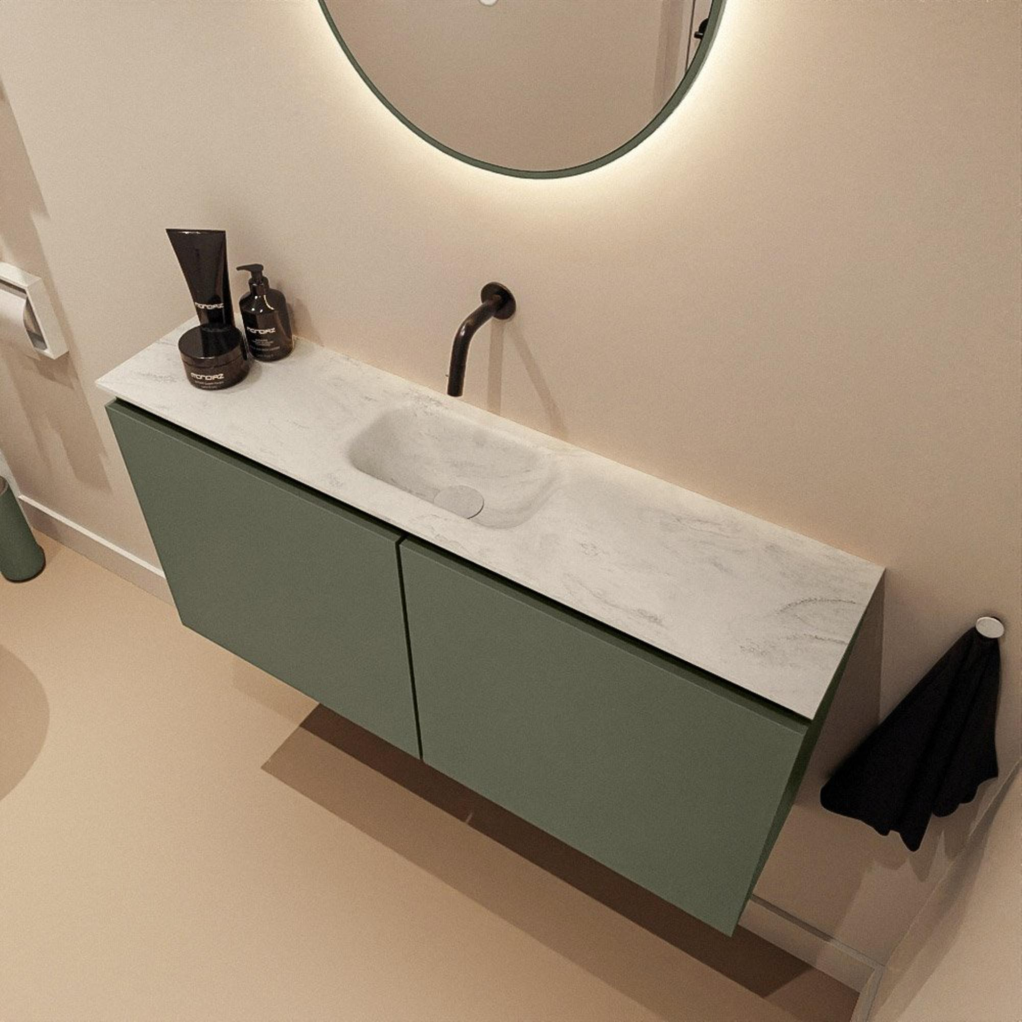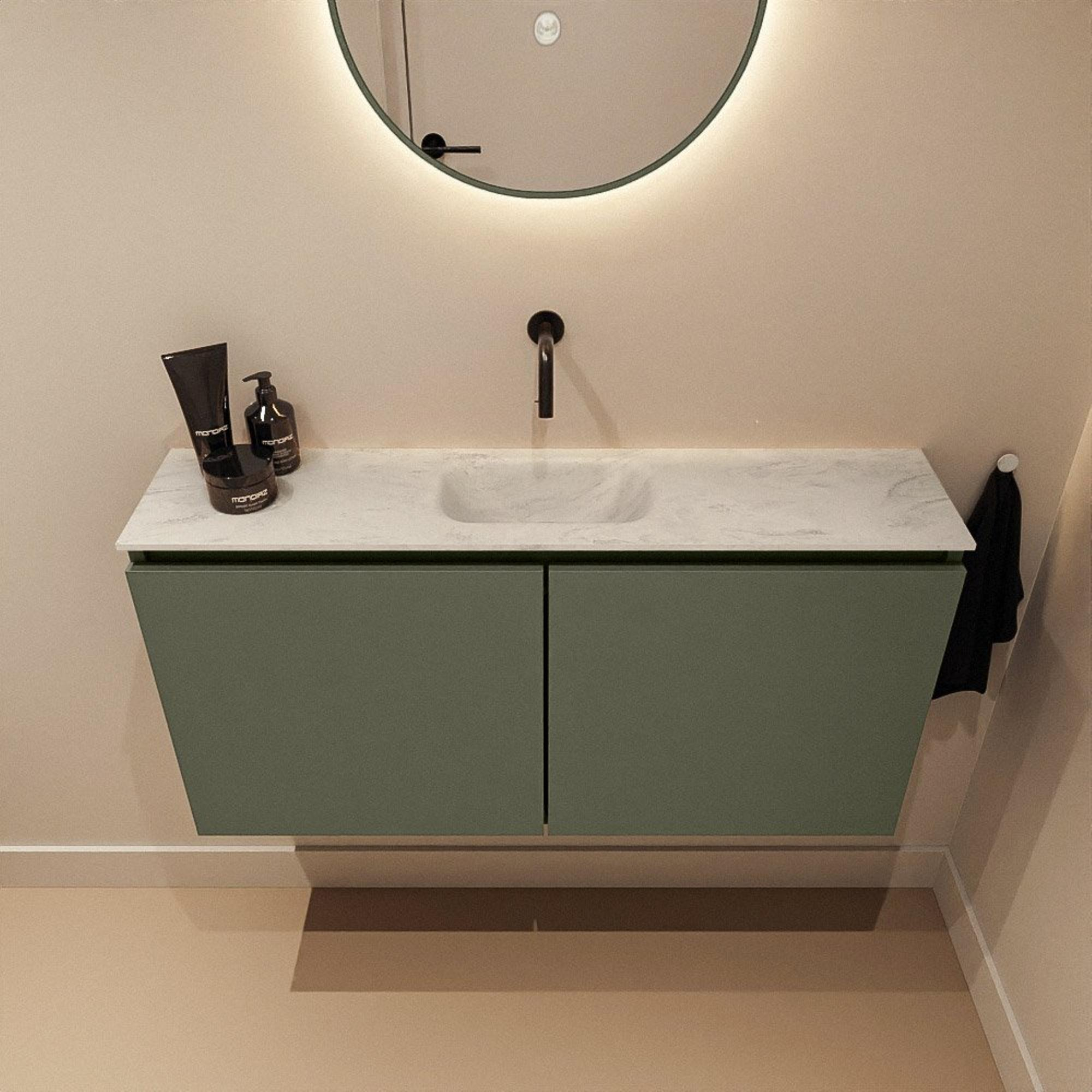 MONDIAZ TURE-DLUX Meuble de toilette 100 cm Army. EDEN lavabo Opalo position milieu. Sans trou de robinet.