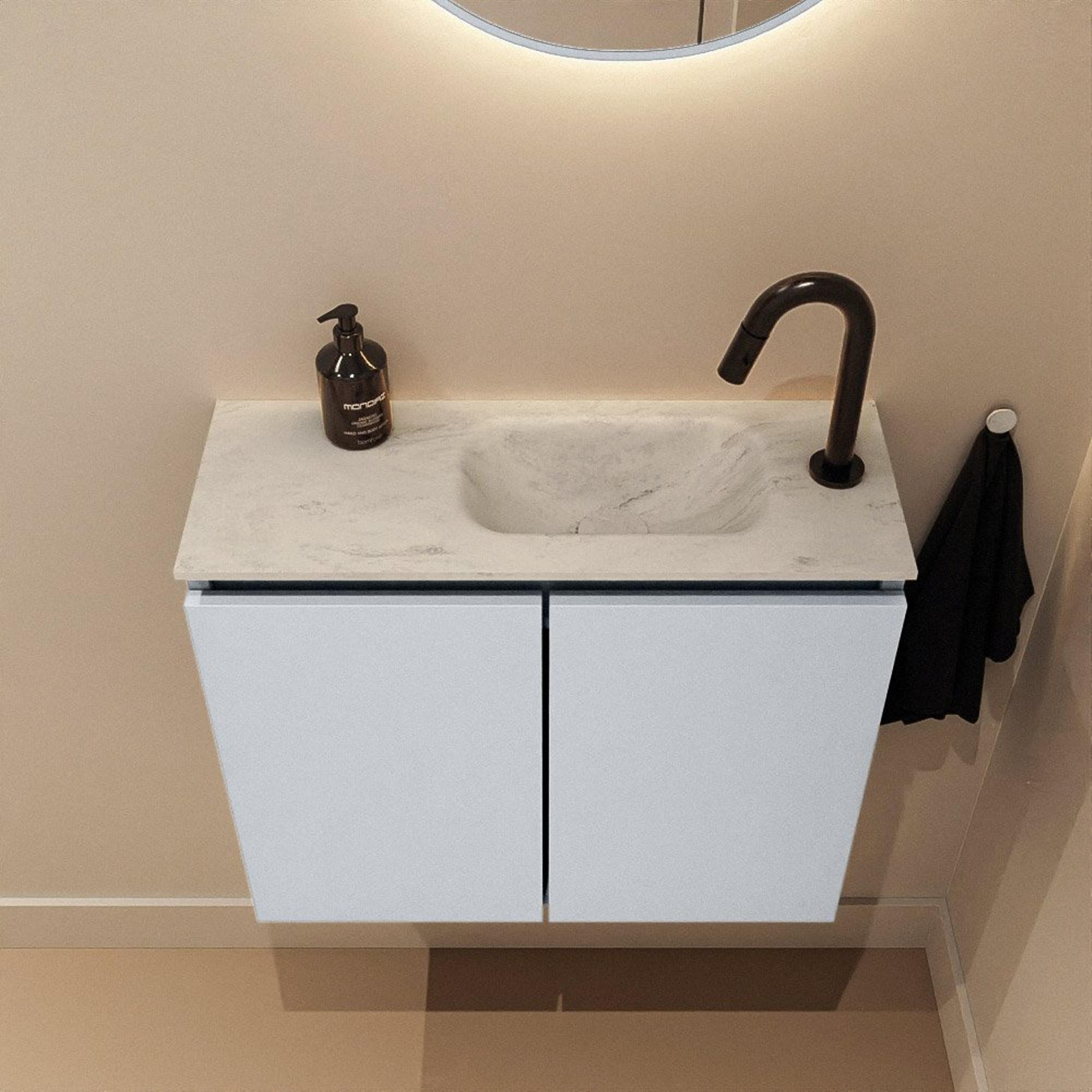 MONDIAZ TURE-DLUX Meuble WC 60 cm Clay. EDEN lavabo Opalo position droite. Avec 1 trou de robinet.