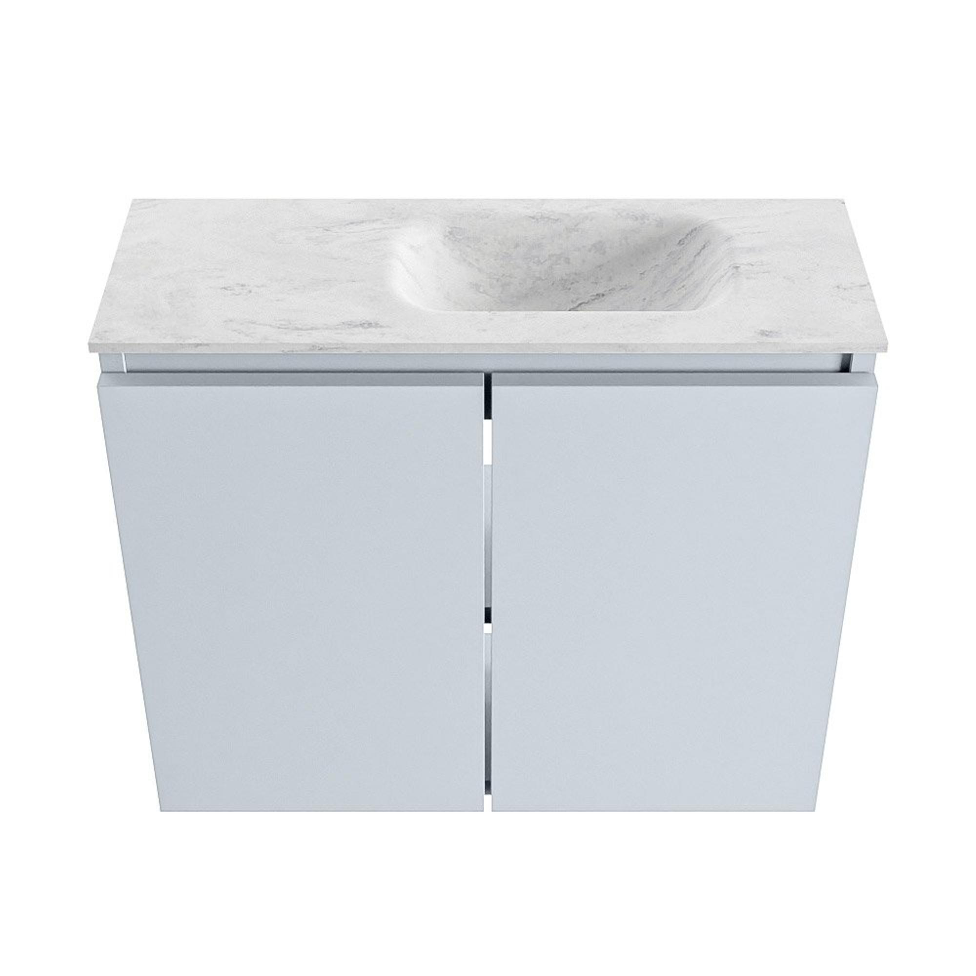 - Plan de lavabo Eden en solid surface de haute qualité, coloris Opalo, avec luxueux aspect marbré clair