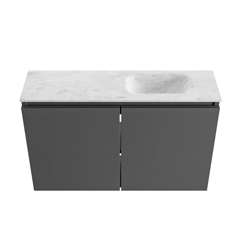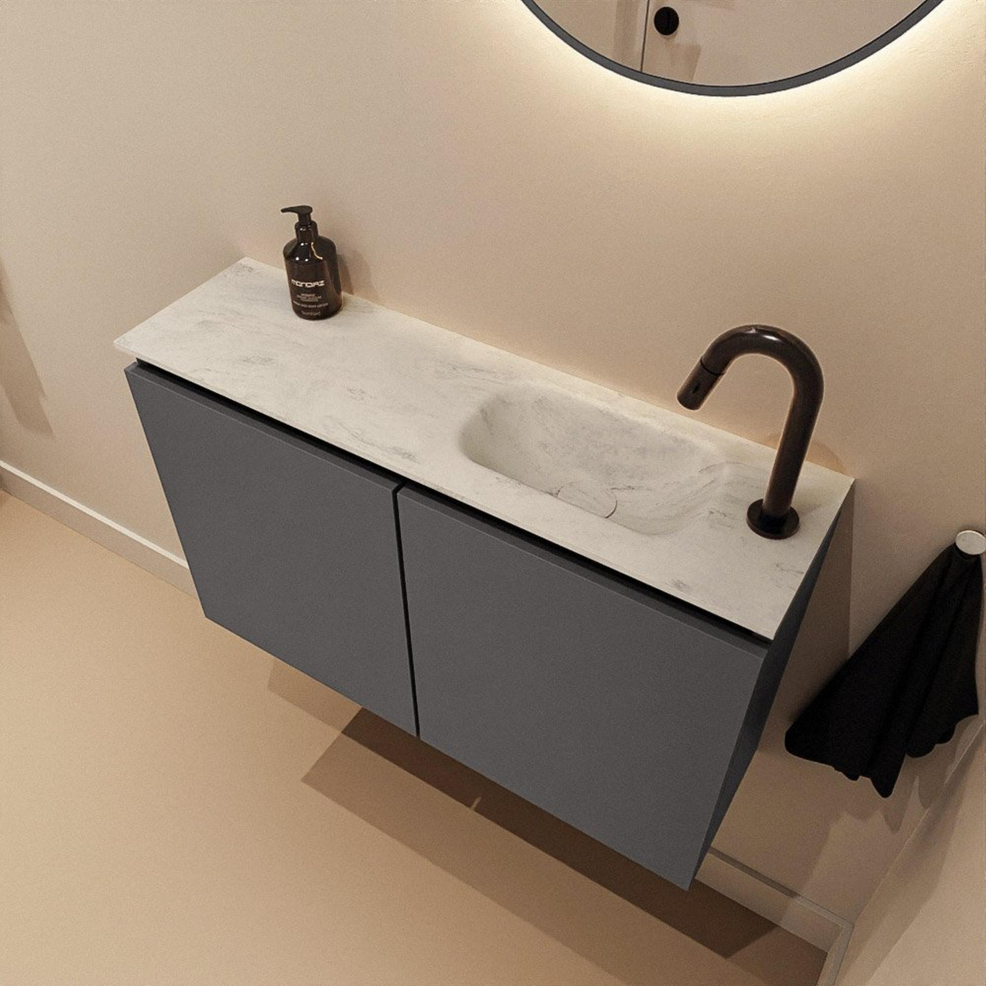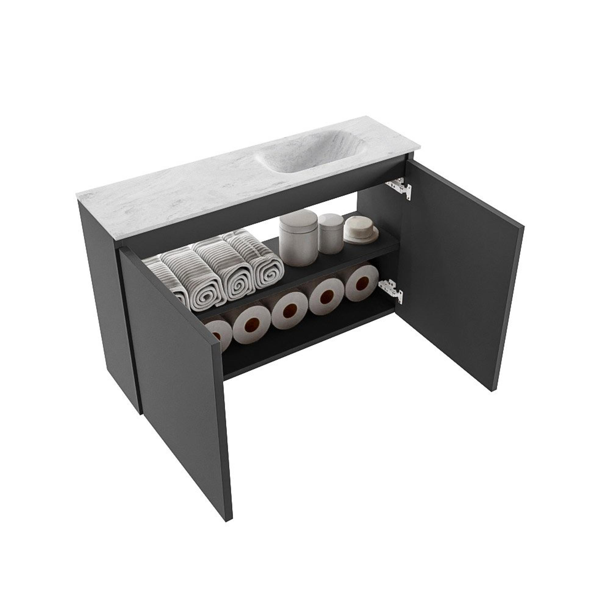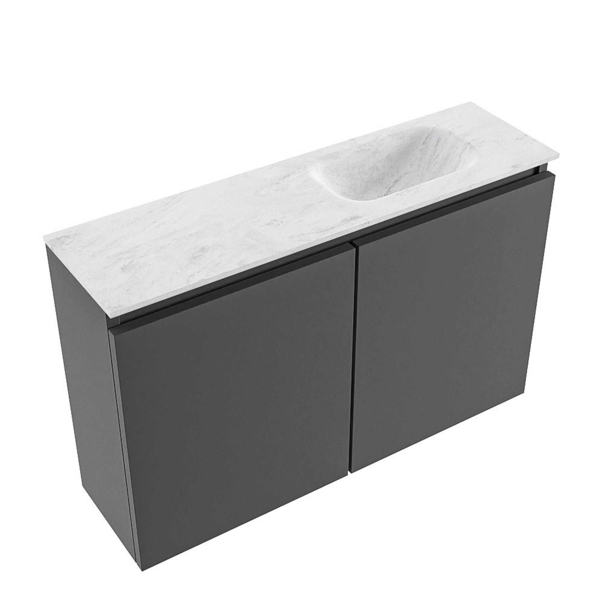 MONDIAZ TURE-DLUX Meuble WC 80 cm Dark Grey. Lavabo EDEN Opalo position droite. Avec 1 trou de robinet.