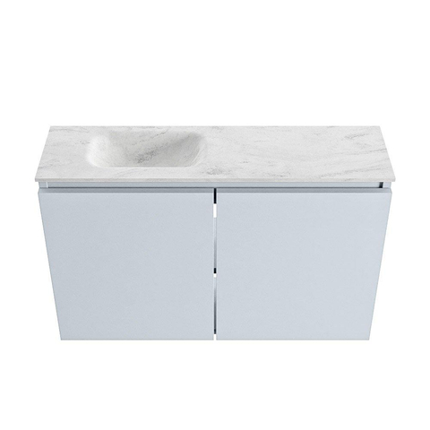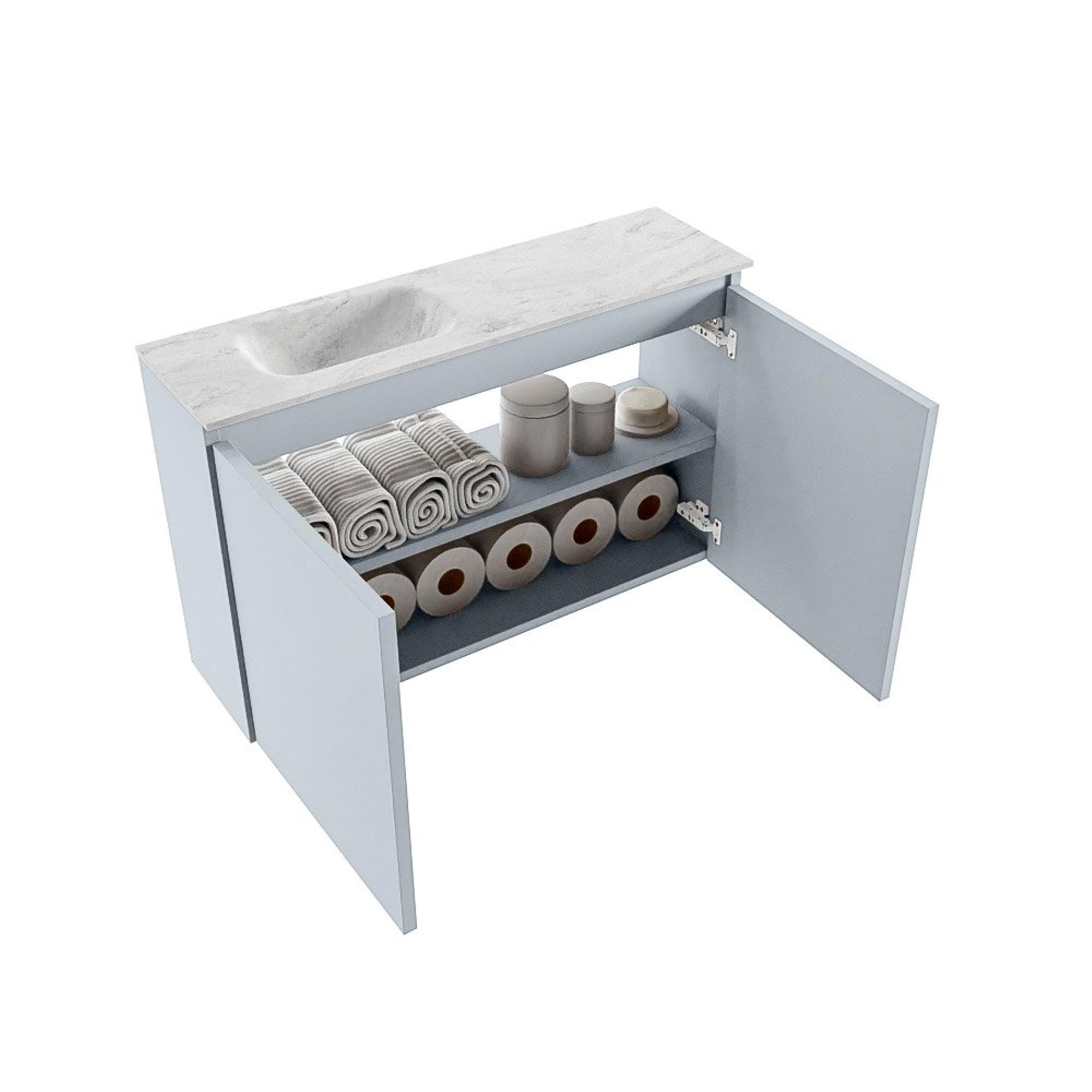 MONDIAZ TURE-DLUX Meuble WC 80cm Clay. EDEN lavabo Opalo position gauche. Sans trou de robinet.