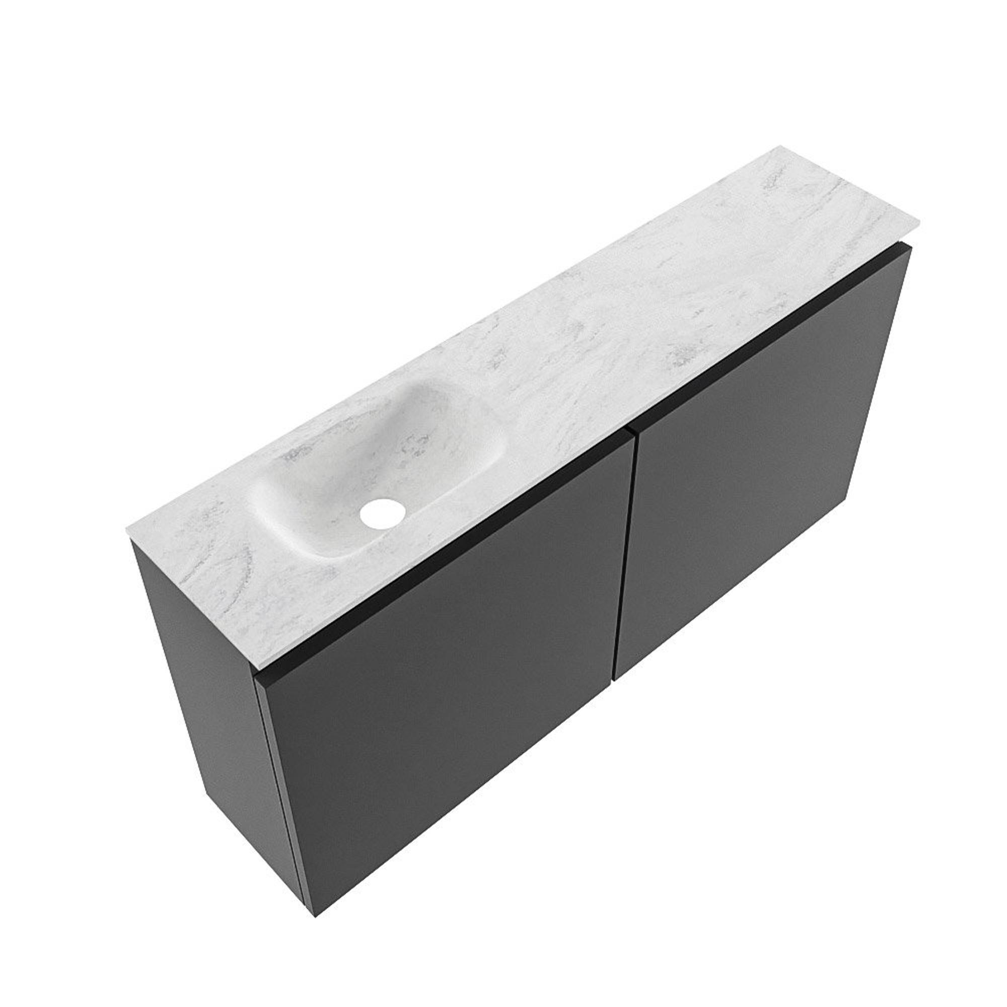 MONDIAZ TURE-DLUX meuble WC 100 cm Dark Grey. EDEN lavabo Opalo position gauche. Avec 1 trou de robinet.