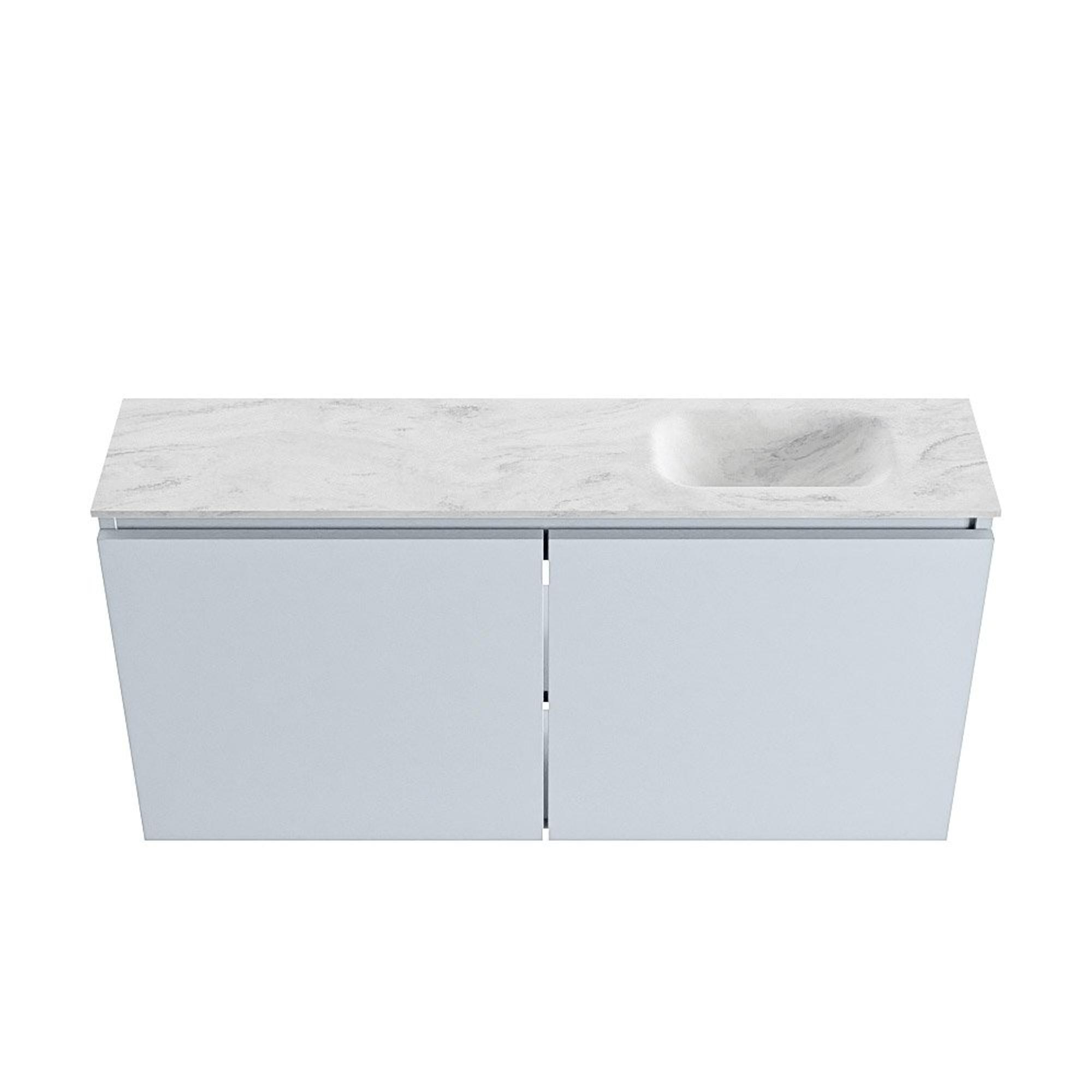 - Vasque Eden Opalo avec position à droite, parfaite en cas de porte ou de mur à gauche du meuble.