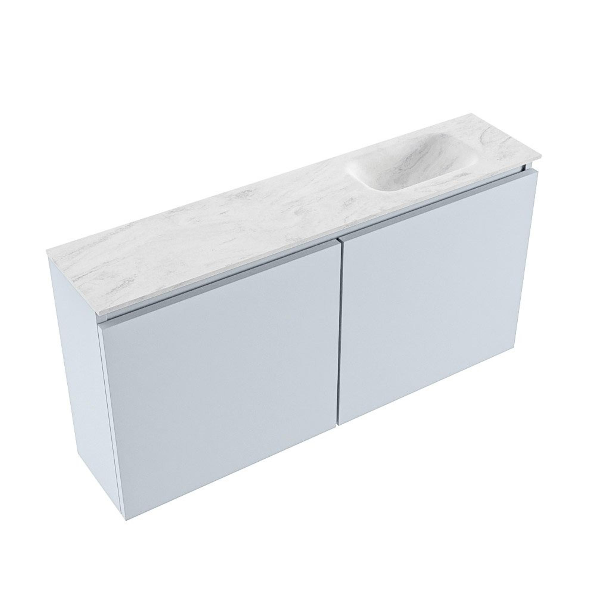 Avec une largeur de 100 cm et une profondeur de seulement 23 cm, ce meuble offre un bon équilibre entre surface de travail et liberté de mouvement. Sa faible profondeur le rend particulièrement adapté aux WC étroits, aux toilettes de hall ou aux salles de bains compactes, où chaque centimètre compte. La vasque se trouve à droite, de sorte que la ligne de passage reste dégagée et que l'espace paraît visuellement plus grand. Malgré son profil élancé, vous disposez d'une surface suffisante pour vous laver les mains et poser un distributeur de savon ou des accessoires. Associez le meuble à un miroir mural étroit et à un robinet mural pour un ensemble aéré et harmonieux.