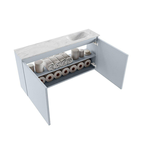 MONDIAZ TURE-DLUX Meuble de toilettes 100 cm Clay. EDEN vasque Opalo position droite. Sans trou de robinet.