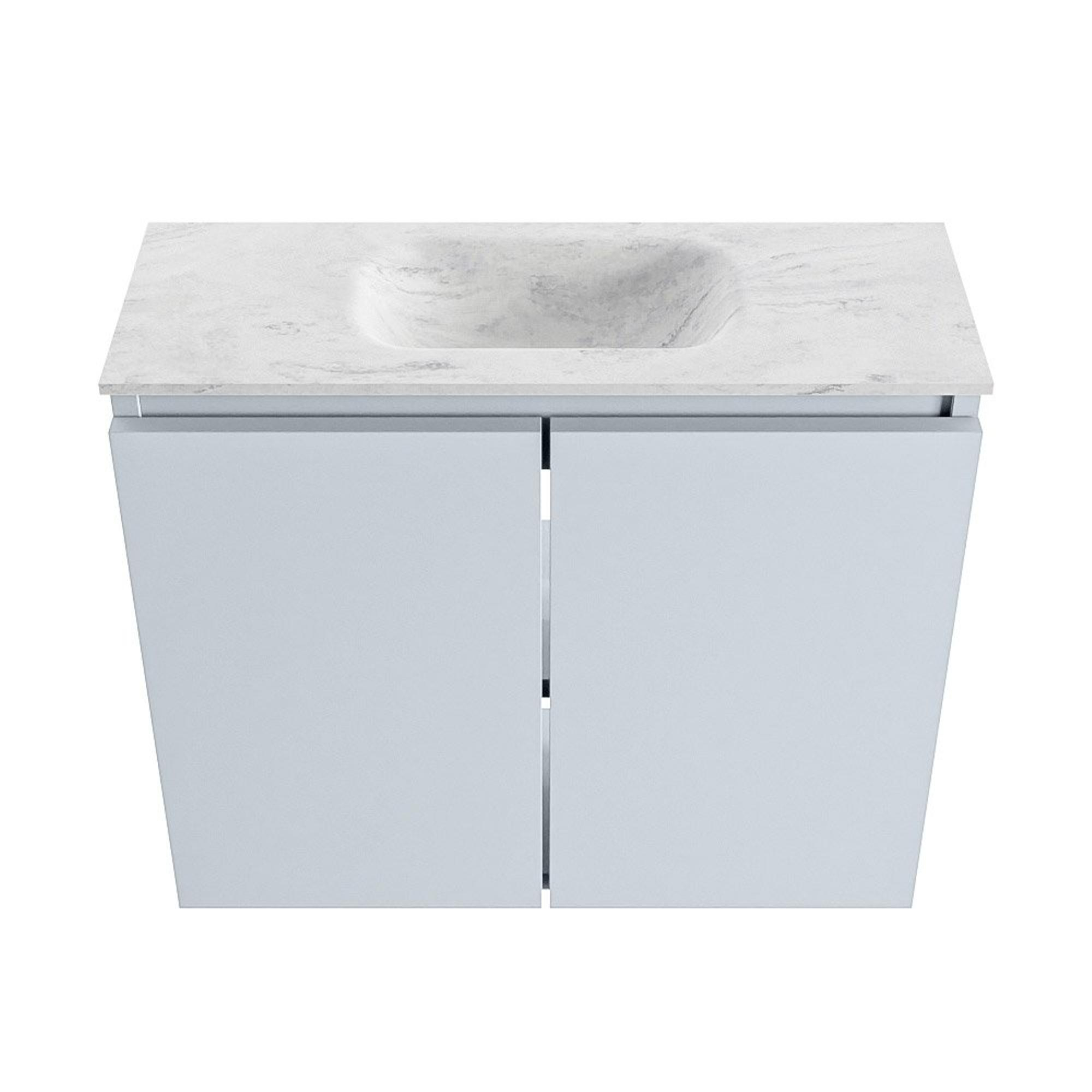 Si vous recherchez un meuble de toilettes compact et moderne, à la fois esthétique et pratique au quotidien, alors cette combinaison est un choix judicieux. Grâce à sa faible profondeur, il s’intègre parfaitement dans un espace toilettes, une petite salle de bains ou une niche où chaque centimètre compte, sans que vous ne deviez sacrifier l’espace de rangement ou le confort. Les façades épurées, la finition sans poignées et la teinte moderne offrent une base sobre et élégante qui se marie facilement avec différents types de carrelage et accessoires. Le lavabo assorti avec vasque placée au centre offre suffisamment d’espace pour se laver les mains confortablement, tandis que le plan autour laisse encore de la place pour un distributeur de savon ou un petit accessoire. Comme il n’y a pas de trou de robinet, vous pouvez choisir vous-même un beau mitigeur à poser et ainsi personnaliser entièrement le style. Ce meuble est donc idéal pour ceux qui recherchent une solution contemporaine et bien pensée pour les toilettes ou une petite salle de bains.