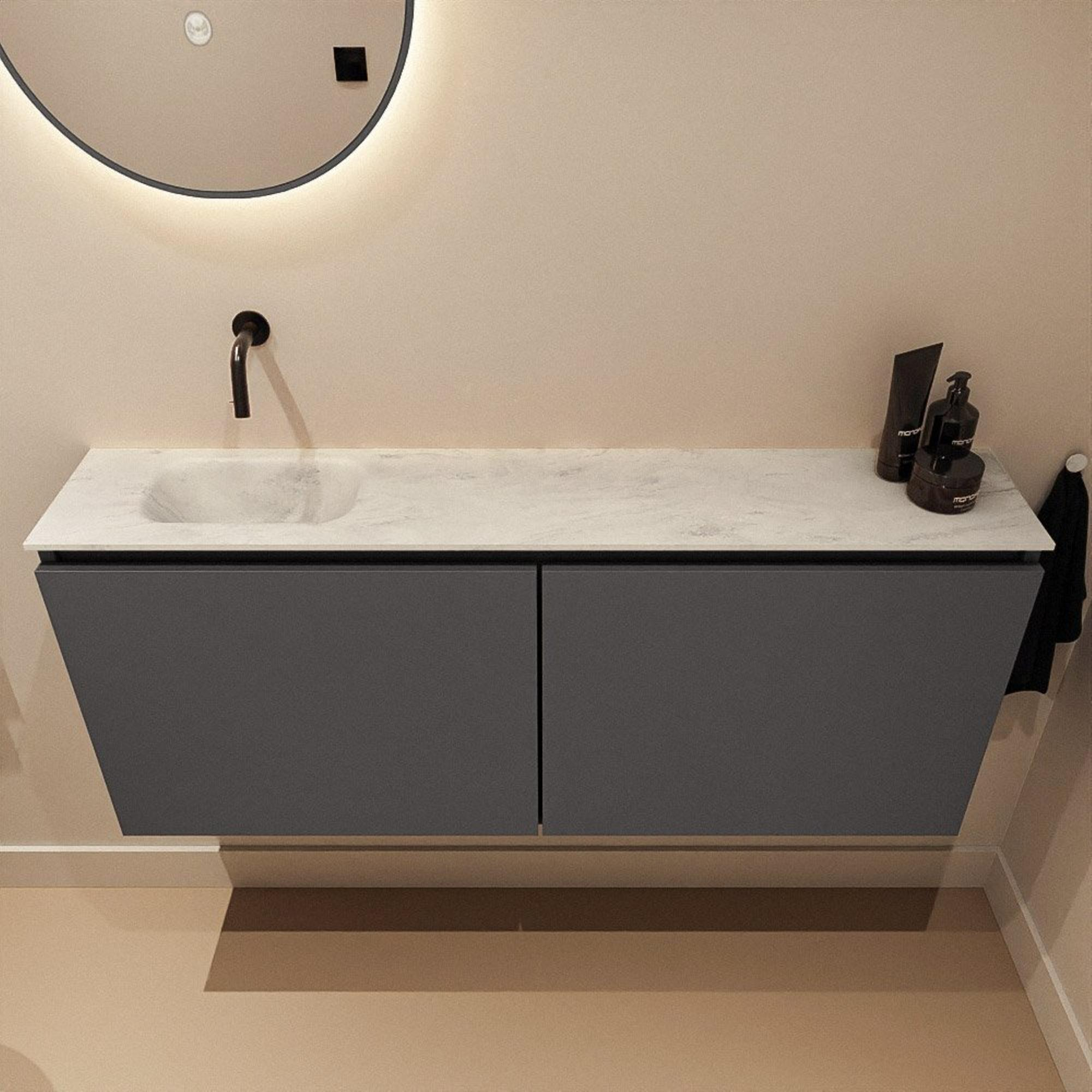 MONDIAZ TURE-DLUX meuble de toilettes 120 cm Dark Grey. EDEN lavabo Opalo position gauche. Sans trou de robinet.