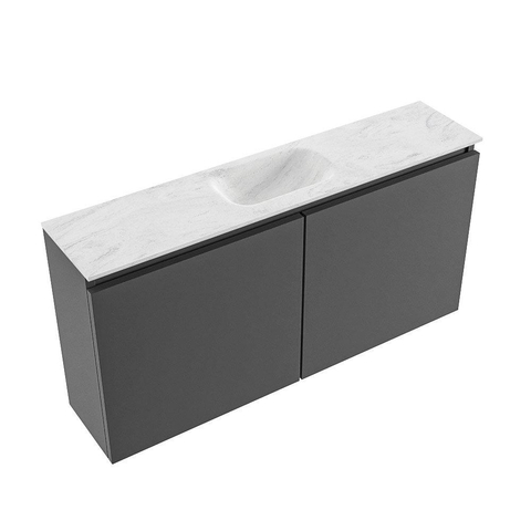 MONDIAZ TURE-DLUX Meuble de toilettes 100 cm Dark Grey. EDEN vasque Opalo position milieu. Avec 1 trou de robinet.